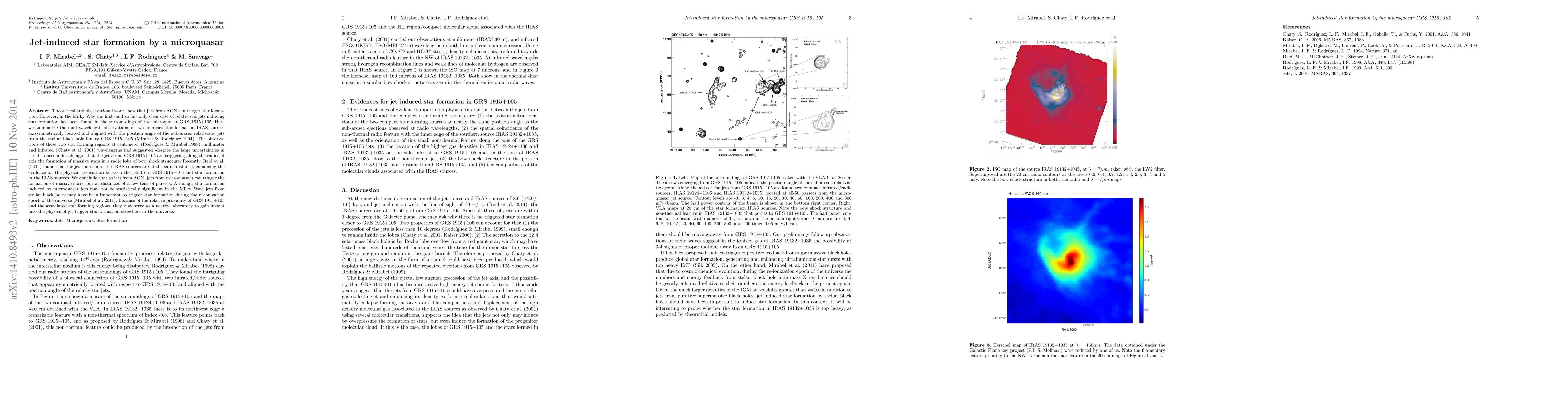 This paper investigates the role of relativistic jets from the microquasar GRS 1915+105 in triggering star formation, presenting evidence from multiwavelength observations that these jets induce the formation of massive stars in nearby regions. The study suggests that while such star formation may not be common in the Milky Way, it could have been significant during the universe's re-ionization epoch.