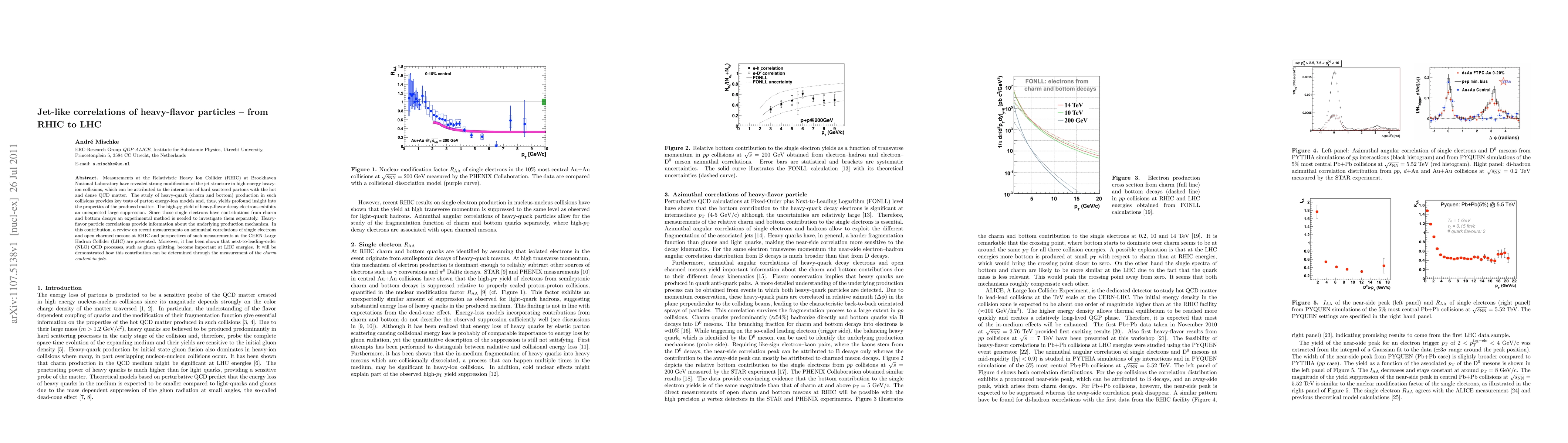 Measurements at the Relativistic Heavy Ion Collider (RHIC) at Brookhaven National Laboratory have revealed strong modification of the jet structure in high-energy heavy-ion collisions, which can be attributed to the interaction of hard scattered partons with the hot and dense QCD matter. The study of heavy-quark (charm and bottom) production in such collisions provides key tests of parton energy-loss models and, thus, yields profound insight into the properties of the produced matter. The high-pT yield of heavy-flavor decay electrons exhibits an unexpected large suppression. Since those single electrons have contributions from charm and bottom decays an experimental method is needed to investigate them separately. Heavy-flavor particle correlations provide information about the underlying production mechanism. In this contribution, a review on recent measurements on azimuthal correlations of single electrons and open charmed mesons at RHIC and perspectives of such measurements at the CERN-Large Hadron Collider (LHC) are presented. Moreover, it has been shown that next-to-leading-order (NLO) QCD processes, such as gluon splitting, become important at LHC energies. It will be demonstrated how this contribution can be determined through the measurement of the charm content in jets.
