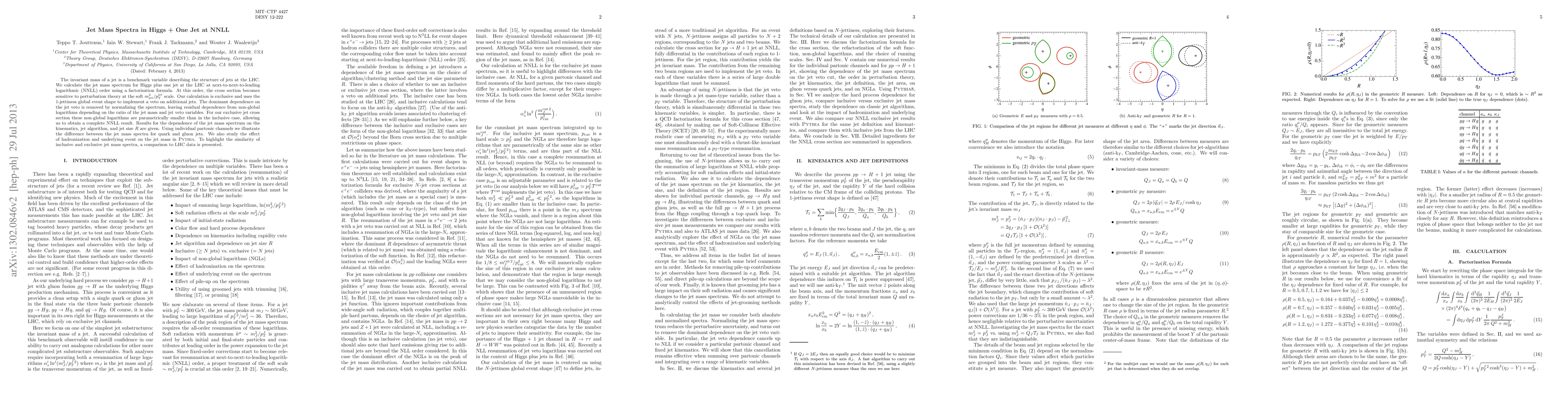 This paper calculates the jet mass spectrum for Higgs plus one jet at next-to-next-to-leading logarithmic (NNLL) order, focusing on exclusive processes and employing a 1-jettiness veto. The study reveals the impact of perturbation theory at the soft scale and compares quark and gluon jet mass spectra, while also considering the effects of hadronization and underlying event processes.