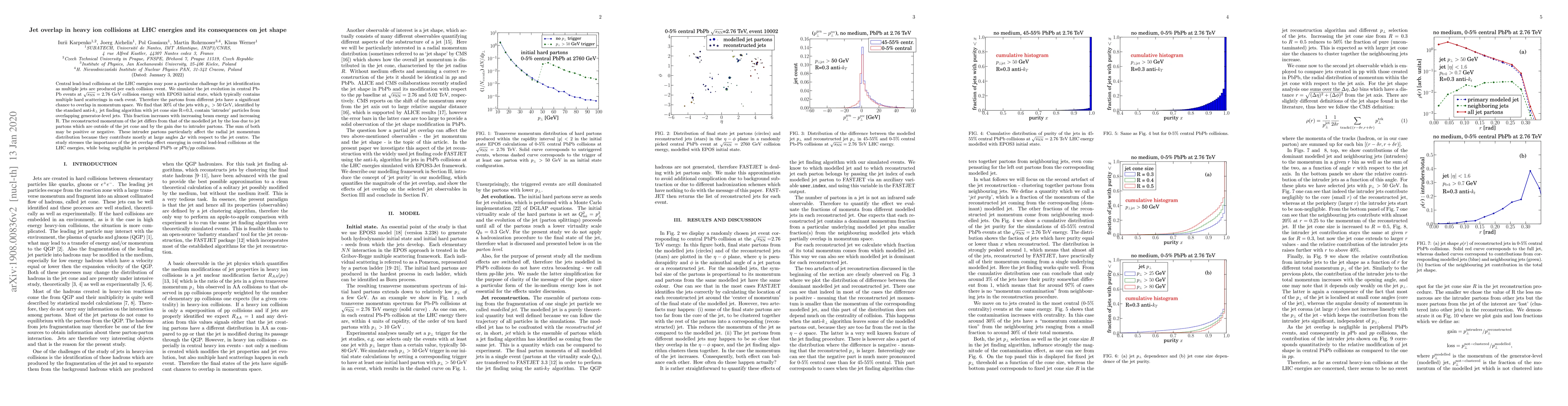 This study simulates jet evolution in central Pb-Pb collisions at LHC energies using EPOS3, revealing that 30% of jets with $p_perp > 50$ GeV and cone size R=0.3 have 'intruder' particles from overlapping jets. This overlap significantly impacts jet momentum distribution, particularly at large angles, emphasizing the importance of understanding this effect in LHC heavy-ion collision research.
