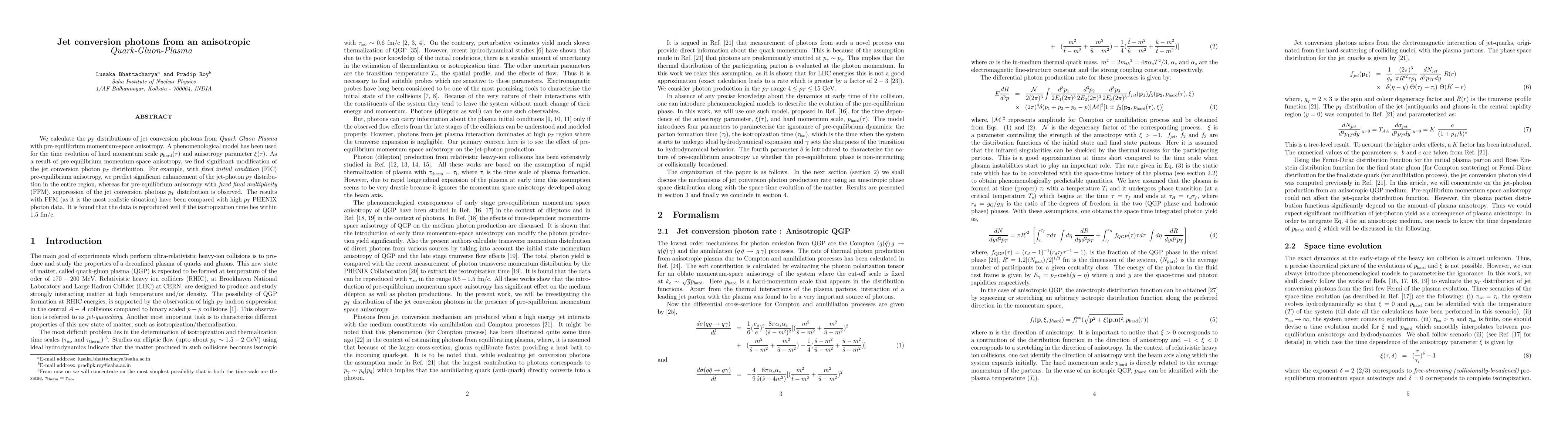 This paper investigates the $p_T$ distributions of jet conversion photons from a quark-gluon plasma with anisotropic pre-equilibrium conditions, finding significant modifications due to momentum-space anisotropy. The results show enhancement for fixed initial conditions and suppression for fixed final multiplicity, with the latter scenario matching PHENIX data when the isotropization time is around 1.5 fm/c.