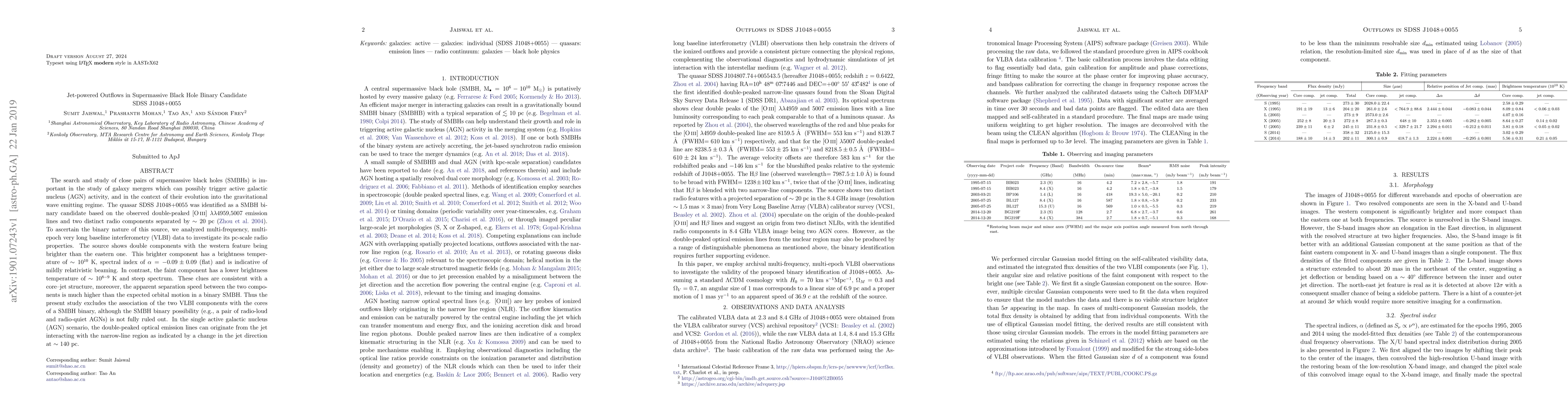 Researchers investigate a supermassive black hole binary candidate, finding evidence of a core-jet structure with two distinct radio components that suggest jet activity rather than a traditional binary system.