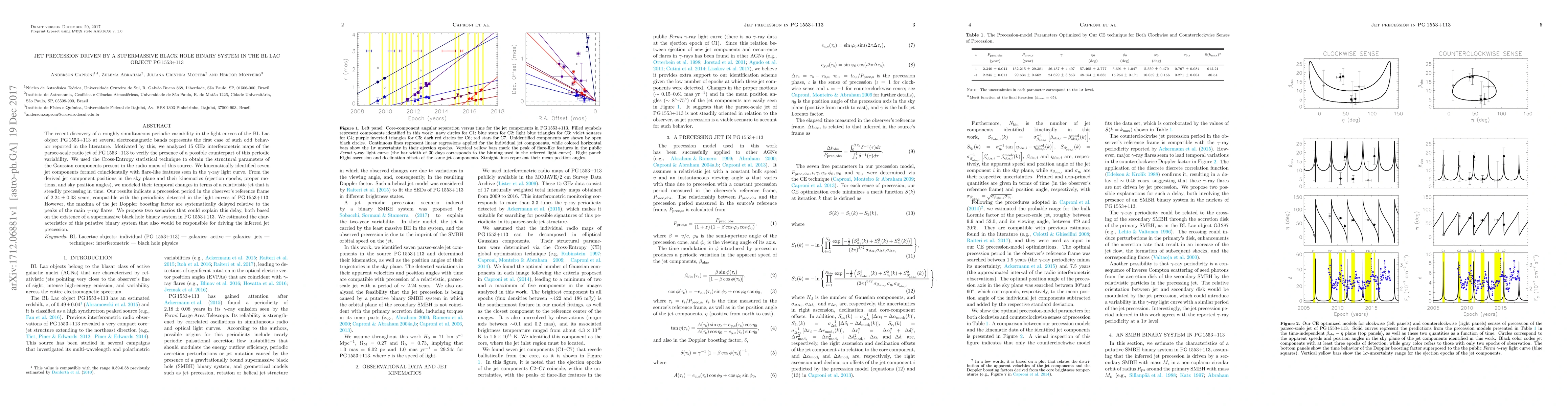This study finds that the jet of the BL Lac object PG 1553+113 precesses every 2.24 years, likely caused by a supermassive black hole binary system, explaining observed periodic light variations. The research combines radio jet imaging and statistical modeling to link jet behavior with potential black hole interactions.