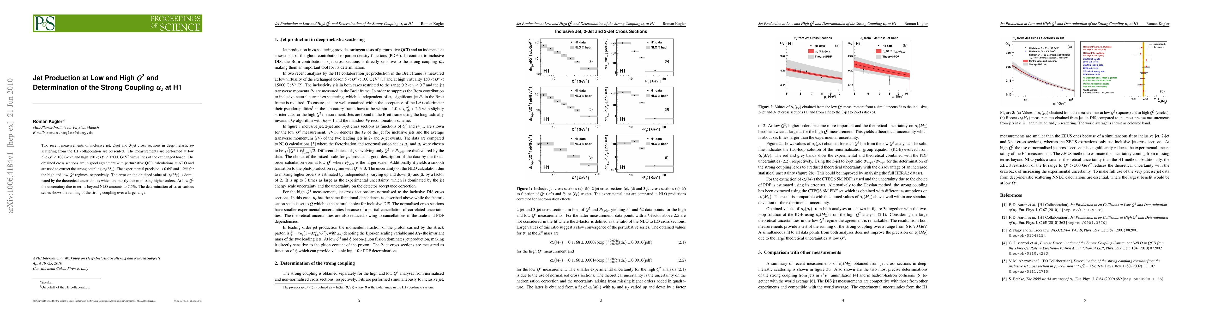 This paper reports measurements of jet cross sections at low and high $Q^2$ from the H1 collaboration, showing good agreement with NLO perturbative QCD calculations. The study determines the strong coupling $\alpha_s(M_Z)$ with experimental precisions of 0.6% and 1.2% for high and low $Q^2$, respectively, highlighting the running of $\alpha_s$ over a wide range.