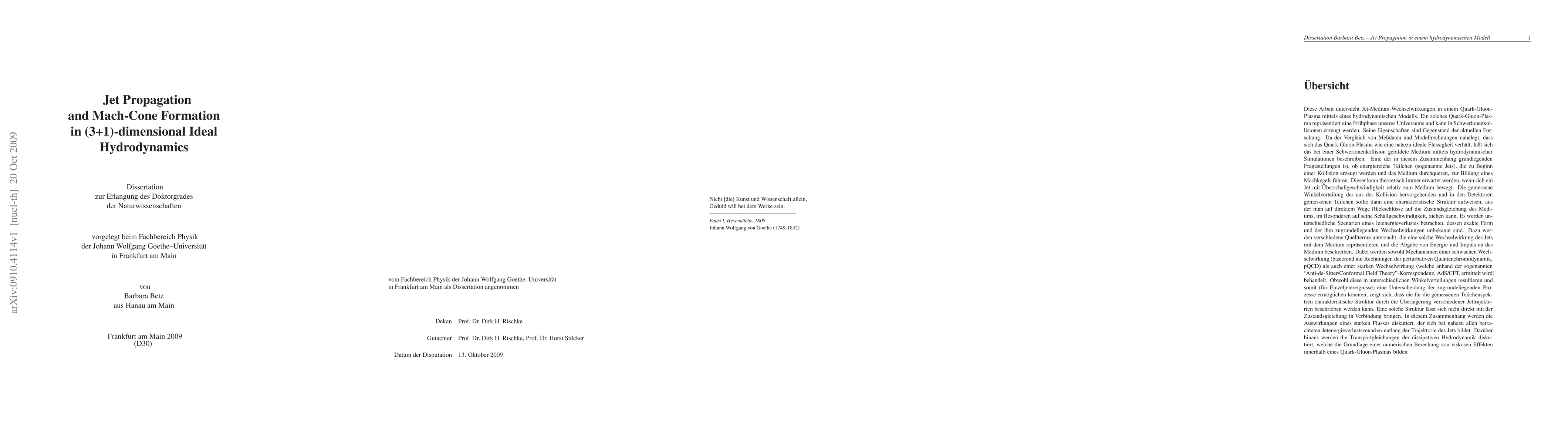 This thesis investigates the jet-medium interactions in a Quark-Gluon Plasma using a hydrodynamical model. It deals with the creation of Mach cones which are supposed to exhibit a characteristic structure in the measured angular particle distributions allowing for direct conclusions about the Equation of State and in particular about the speed of sound of the medium. Several different scenarios of jet energy loss are examined and different mechanisms of energy and momentum loss are analyzed, ranging from weak interactions (based on calculations from perturbative Quantum Chromodynamics, pQCD) to strong interactions (formulated using the Anti-de-Sitter/Conformal Field Theory Correspondence, AdS/CFT). Though they result in different angular particle correlations which could in principle allow to distinguish the underlying processes, it is shown that the characteristic structure observed in experimental data can be obtained due to the different contributions of several possible jet trajectories through an expanding medium. Such a structure cannot directly be connected to the Equation of State. In this context, the impact of a strong flow created behind the jet (the diffusion wake) is examined which is common to almost all jet deposition scenarios. Besides that, the transport equations for dissipative hydrodynamics are discussed which are fundamental for any numerical computation of viscous effects in a Quark-Gluon Plasma.