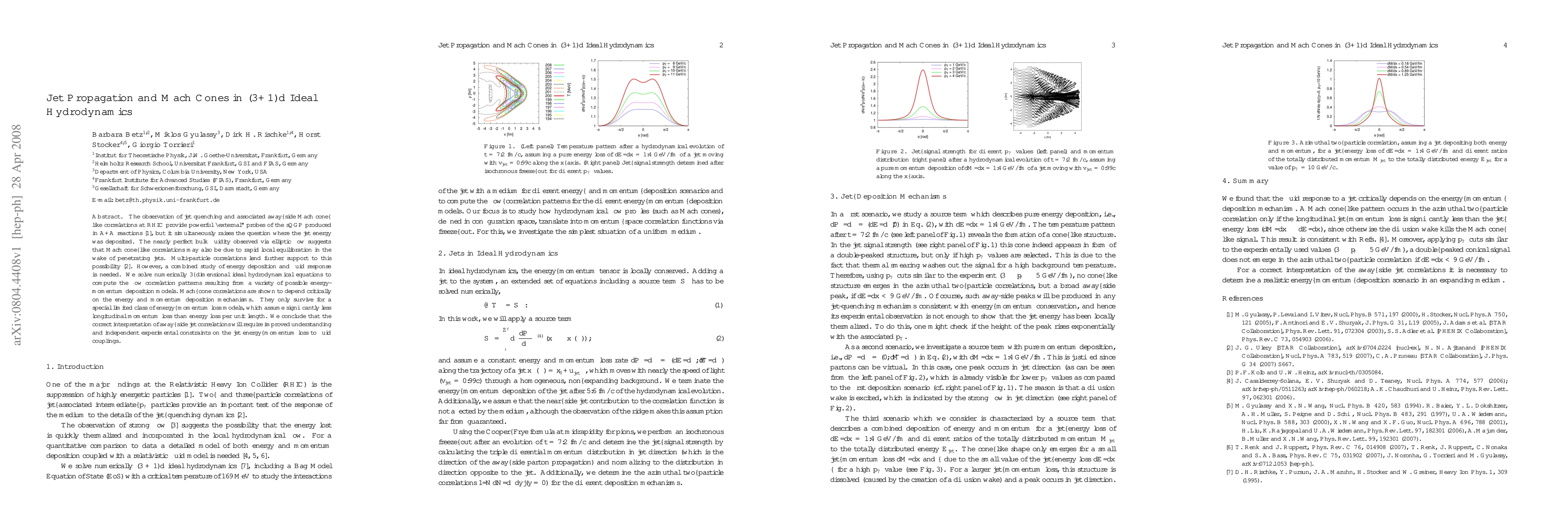 Researchers studied jet propagation and Mach cones in particle collisions using ideal hydrodynamics, finding that energy and momentum deposition models significantly impact correlation patterns, highlighting the need for independent experimental constraints to accurately interpret away-side jet correlations.