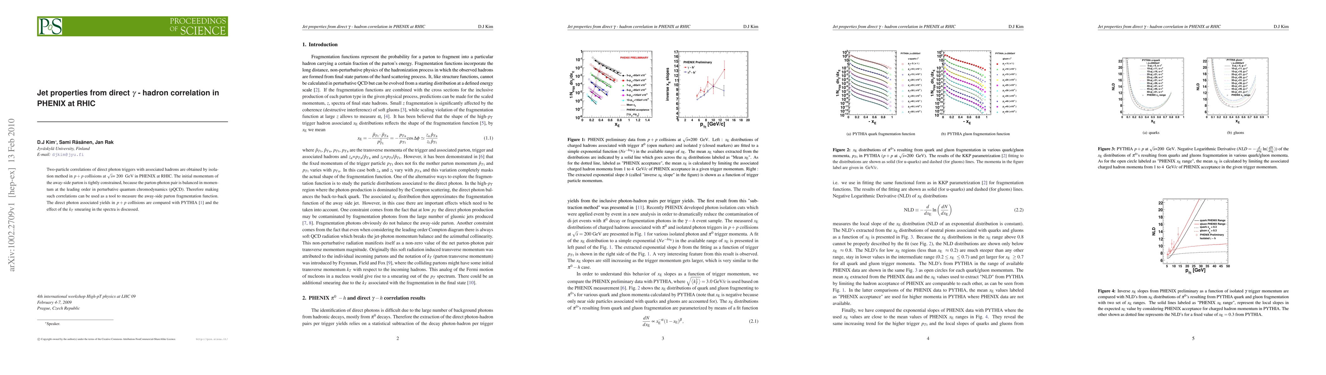 Two-particle correlations of direct photon triggers with associated hadrons are obtained by isolation method in p+p collisions at \sqrt{s} = 200 GeV in PHENIX at RHIC. The initial momentum of the away-side parton is tightly constrained, because the parton-photon pair is balanced in momentum at the leading order in perturbative quantum chromodynamics (pQCD). Therefore making such correlations can be used as a tool to measure the away-side parton fragmentation function. The direct photon associated yields in p+p collisions are compared with PYTHIA and the effect of the $k_{T}$ smearing in the spectra is discussed.