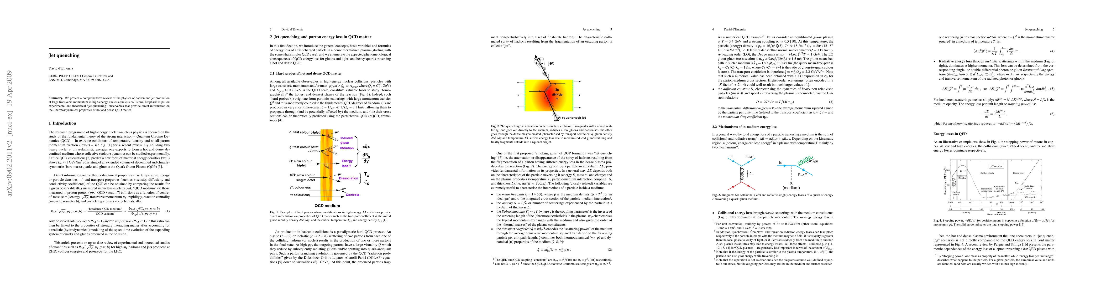 Summary: This paper reviews the physics of hadron and jet production in high-energy nucleus-nucleus collisions, focusing on "jet quenching" phenomena that reveal insights into the thermodynamic properties of hot and dense QCD matter. The study bridges experimental observations and theoretical models.