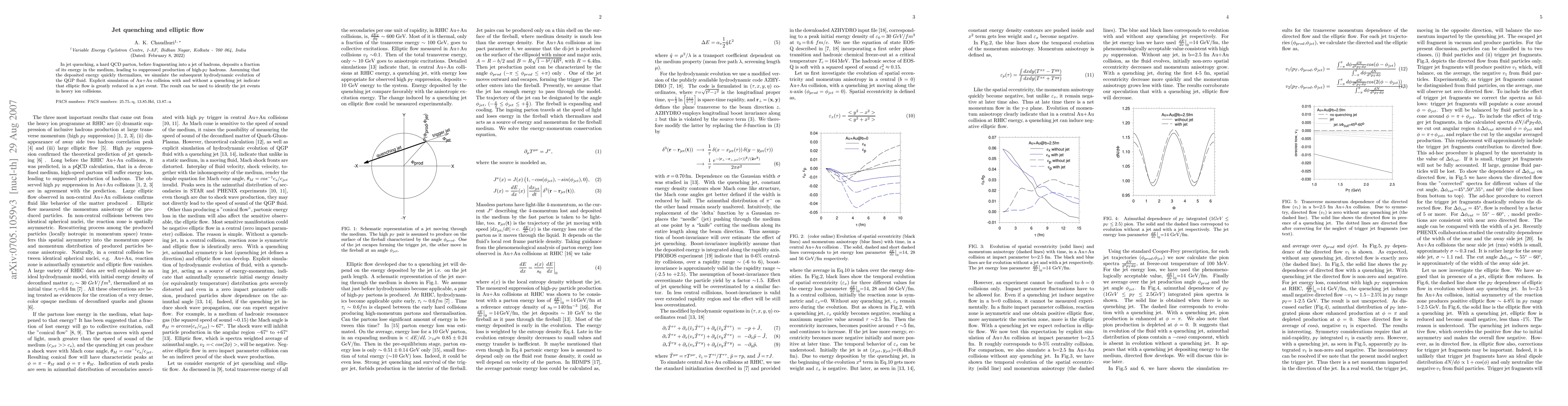 This paper explores jet quenching in heavy ion collisions, demonstrating that a hard QCD parton's energy deposit in the medium suppresses high-$p_T$ hadron production. Simulations show significantly reduced elliptic flow in events with a quenching jet, aiding in identifying such events in experiments.
