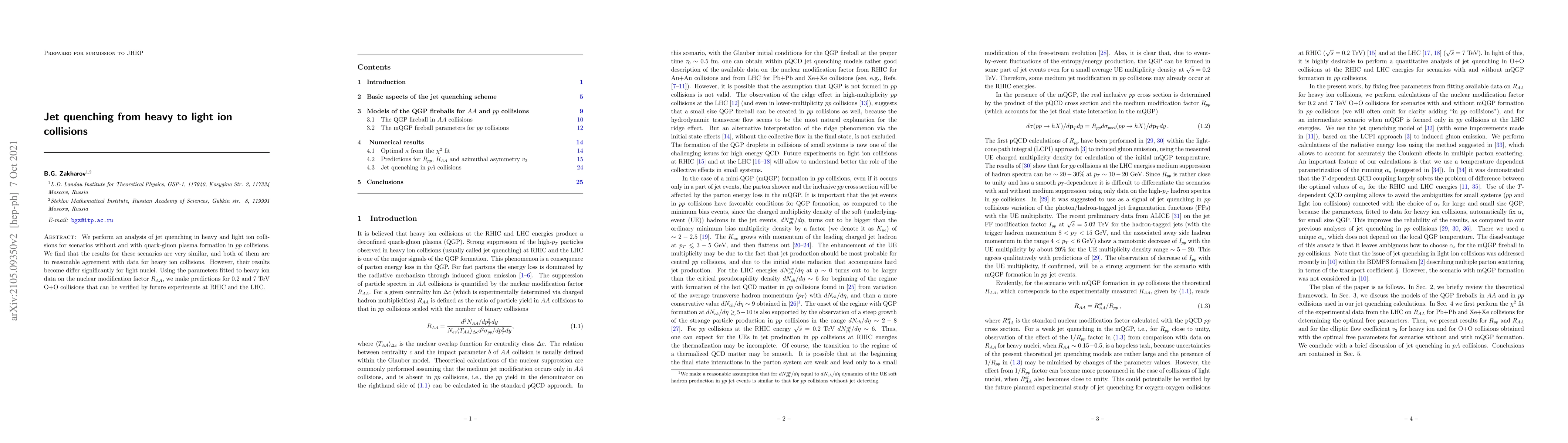 We perform an analysis of jet quenching in heavy and light ion collisions for scenarios without and with quark-gluon plasma formation in $pp$ collisions. We find that the results for these scenarios are very similar, and both of them are in reasonable agreement with data for heavy ion collisions. However, their results become differ significantly for light nuclei. Using the parameters fitted to heavy ion data on the nuclear modification factor $R_{AA}$, we make predictions for 0.2 and 7 TeV O+O collisions that can be verified by future experiments at RHIC and the LHC.