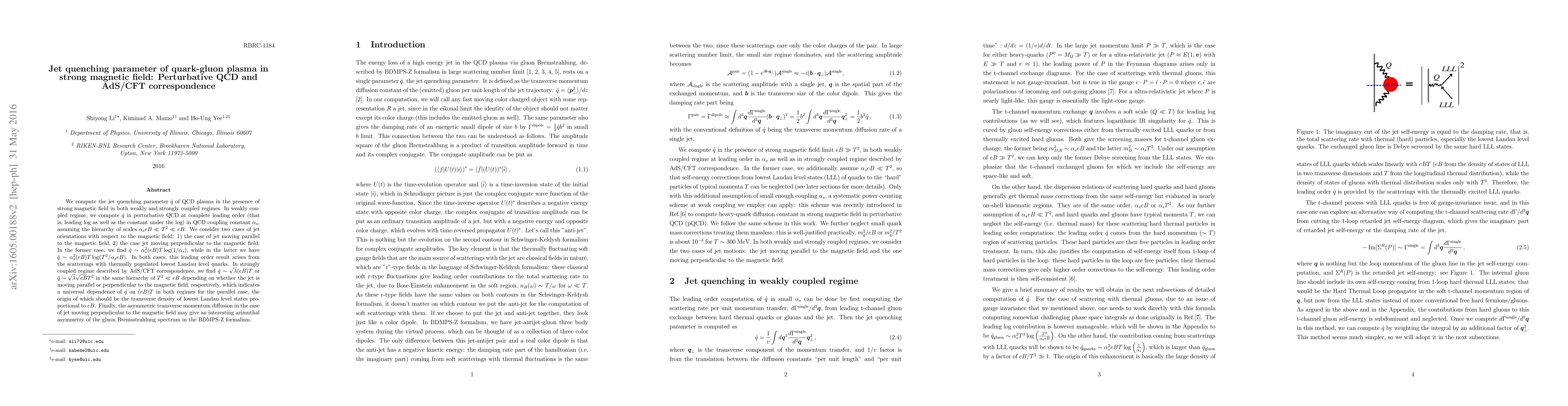 This paper computes the jet quenching parameter $\hat q$ in QCD plasma under strong magnetic fields, analyzing both weakly and strongly coupled regimes. In the weakly coupled regime, $\hat q$ is derived using perturbative QCD, showing different dependencies on the jet orientation relative to the magnetic field. In the strongly coupled regime, $\hat q$ is determined via AdS/CFT correspondence, revealing a universal dependence on $(eB)T$ for parallel jets.