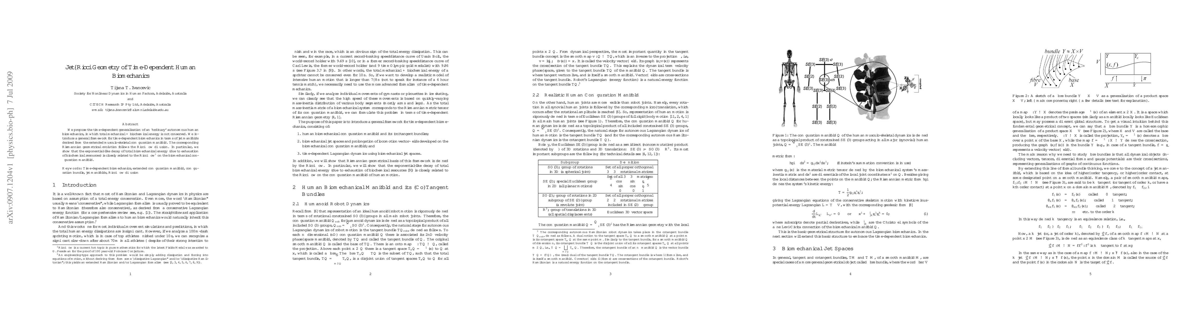 This paper introduces a time-dependent framework for human biomechanics based on jet manifolds and Ricci flow diffusion, demonstrating how biomechanical energy decay correlates with the Ricci flow on the configuration manifold due to biochemical resource depletion. The study generalizes traditional autonomous biomechanics to account for non-conservation of total mechanical and biochemical energy over time.