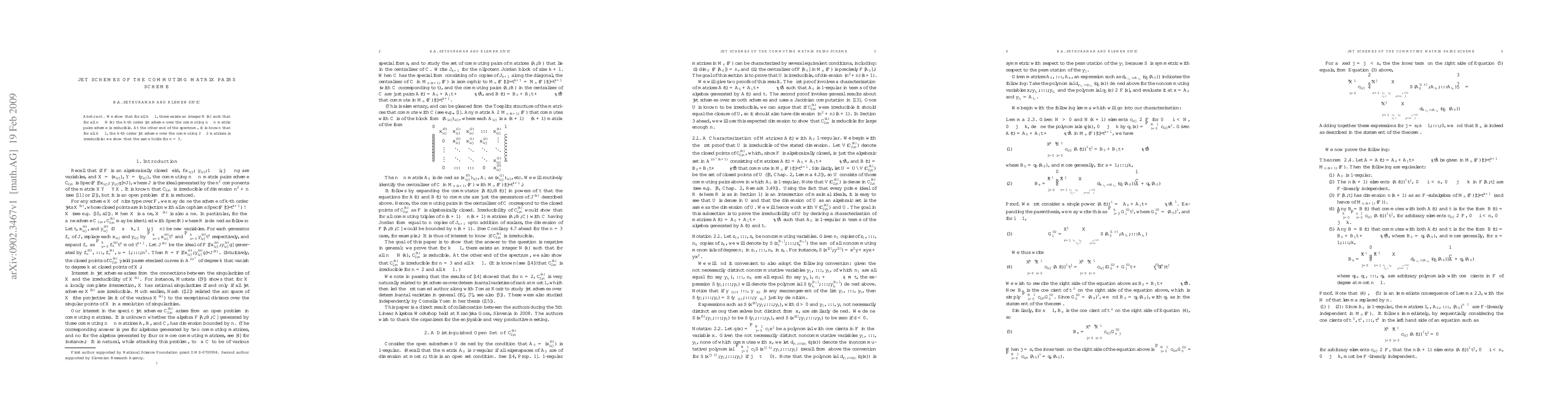 We show that for all $k\ge 1$, there exists an integer $N(k)$ such that for all $n\ge N(k)$ the $k$-th order jet scheme over the commuting $n\times n$ matrix pairs scheme is reducible. At the other end of the spectrum, it is known that for all $k\ge 1$, the $k$-th order jet scheme over the commuting $2\times 2$ matrices is irreducible: we show that the same holds for $n=3$.