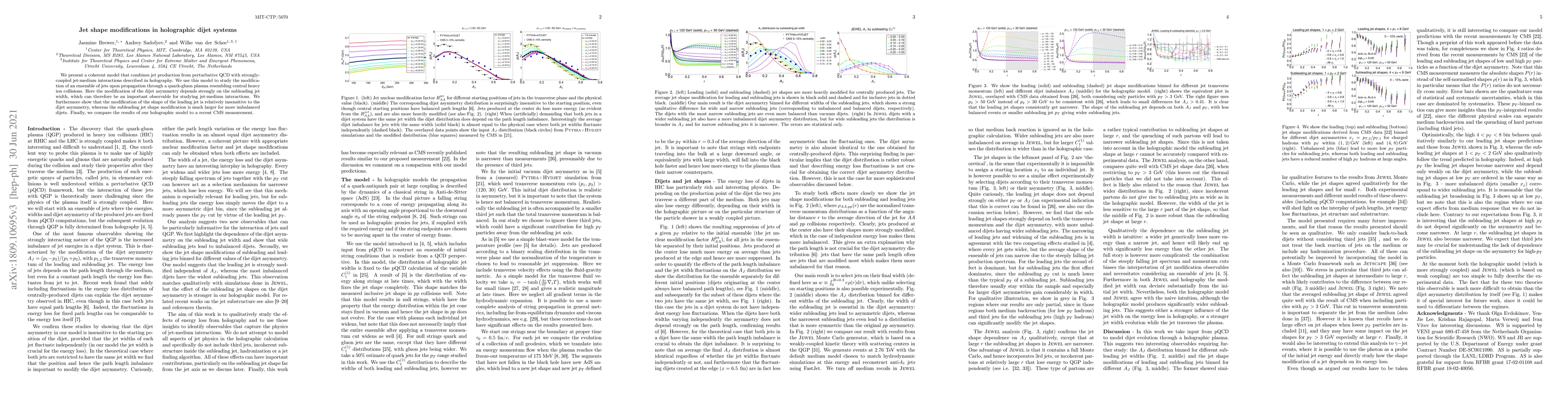 We present a coherent model that combines jet production from perturbative QCD with strongly-coupled jet-medium interactions described in holography. We use this model to study the modification of an ensemble of jets upon propagation through a quark-gluon plasma resembling central heavy ion collisions. Here the modification of the dijet asymmetry depends strongly on the subleading jet width, which can therefore be an important observable for studying jet-medium interactions. We furthermore show that the modification of the shape of the leading jet is relatively insensitive to the dijet asymmetry, whereas the subleading jet shape modification is much larger for more imbalanced dijets. Finally, we compare the results of our holographic model to a recent CMS measurement.
