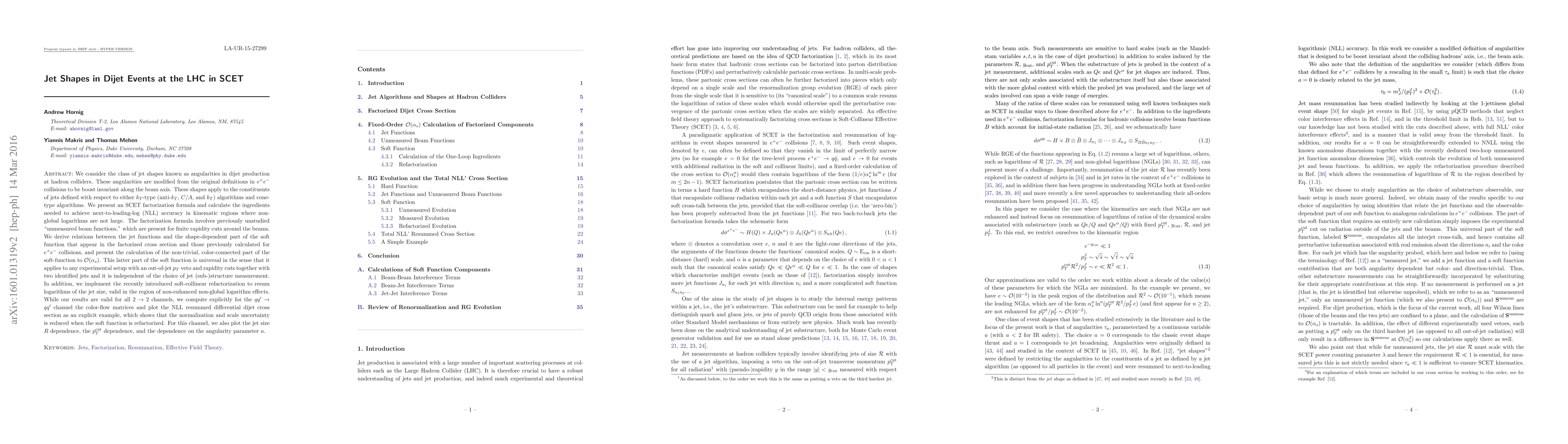 This paper investigates angularities in dijet events at the LHC using Soft-Collinear Effective Theory (SCET) for factorization, achieving next-to-leading-log accuracy. It introduces new "unmeasured beam functions" and presents a universal color-connected soft function applicable to various jet algorithms, demonstrating reduced normalization and scale uncertainties in the qq' → qq' channel.