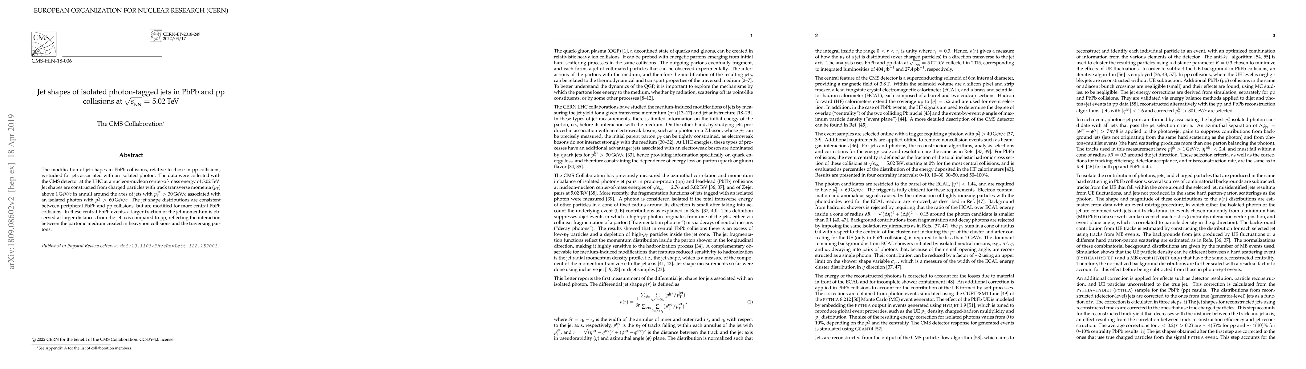 This paper investigates the jet shapes in PbPb and pp collisions at 5.02 TeV, focusing on jets associated with isolated photons. The CMS detector data show consistent jet shapes in peripheral PbPb and pp collisions but reveal modifications in central PbPb events, indicating a larger fraction of momentum at larger distances from the jet axis due to interactions with the partonic medium.