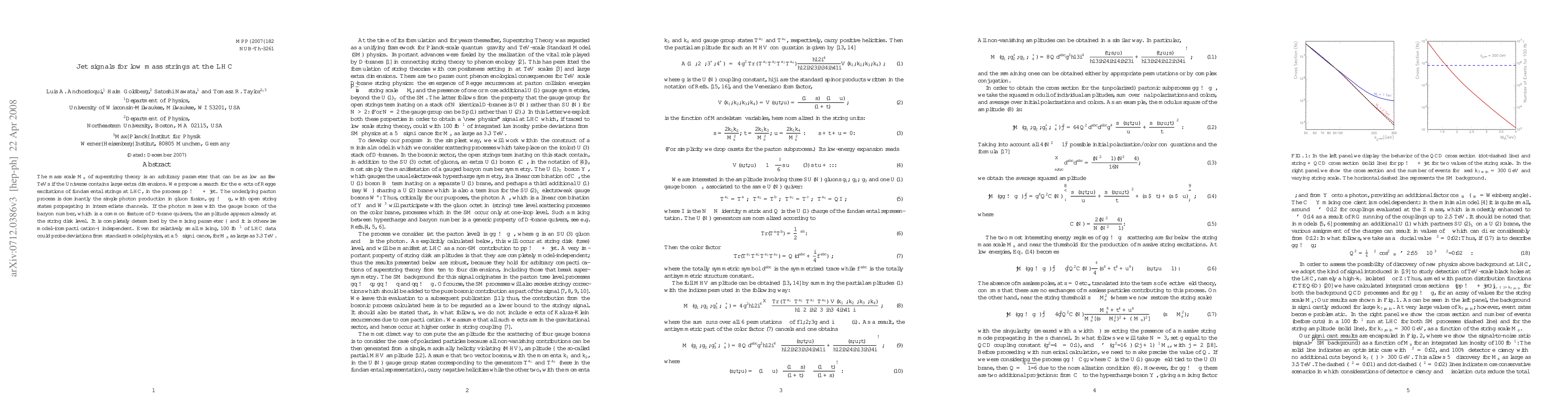 The paper presents a detailed calculation of the partonic cross section for gg → gγ, including string corrections and mixing factors, to assess the LHC's discovery reach for low-scale string models.