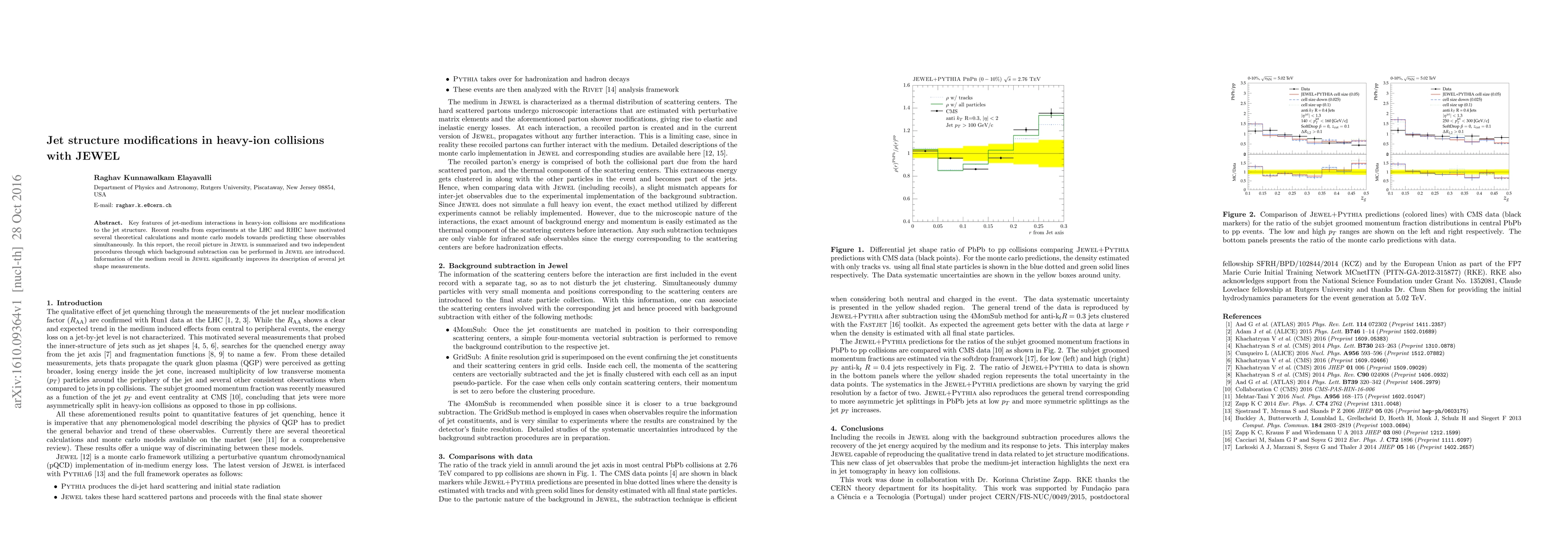 This paper discusses modifications in jet structure observed in heavy-ion collisions using the JEWEL framework, highlighting the improved accuracy of jet shape measurements through the implementation of medium recoil information and two independent background subtraction methods.
