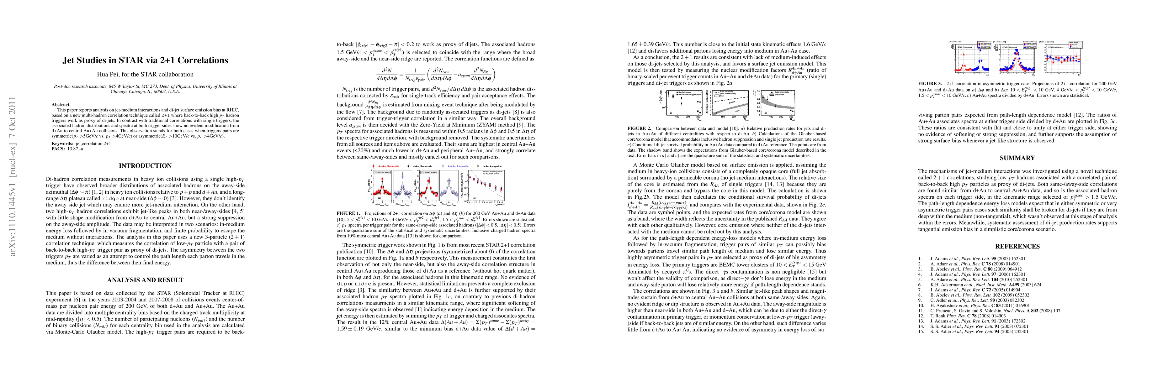 This paper investigates jet-medium interactions and di-jet emission bias using a novel \texttt{2+1} correlation technique at RHIC, finding no significant modification in associated hadron distributions across different collision types, indicating minimal medium effects on jet production.
