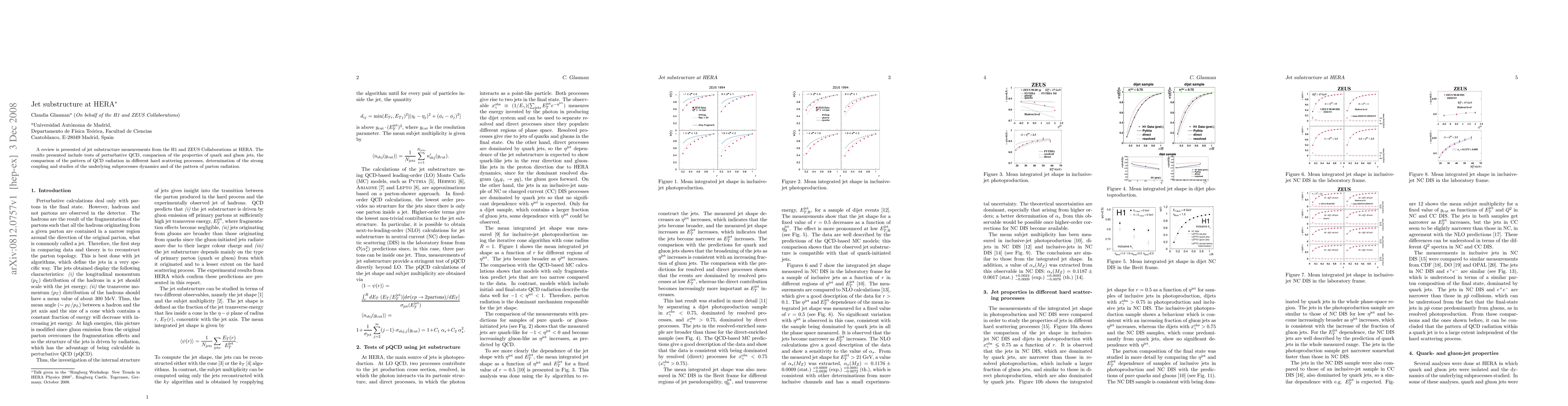 The research presents a review of jet substructure measurements from H1 and ZEUS Collaborations at HERA, focusing on tests of perturbative QCD, comparison of quark and gluon jets, and studies of underlying subprocess dynamics and parton radiation patterns in various hard scattering processes.