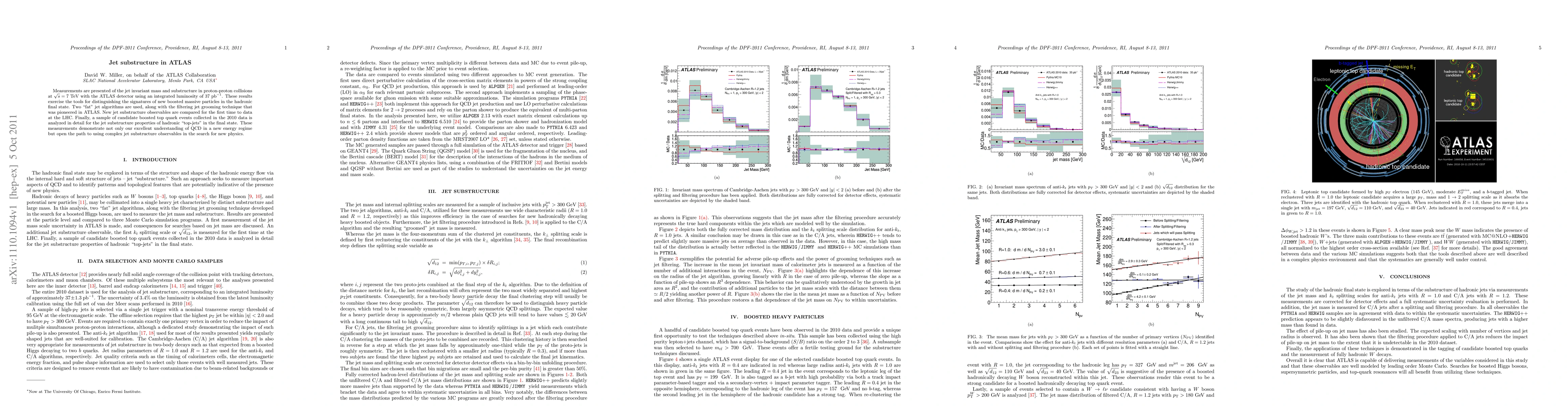 The ATLAS experiment measures jet invariant mass and substructure in proton-proton collisions at 7 TeV, employing "fat" jet algorithms and filtering jet grooming. These results enhance our understanding of QCD and pave the way for using complex jet substructure observables in new physics searches.