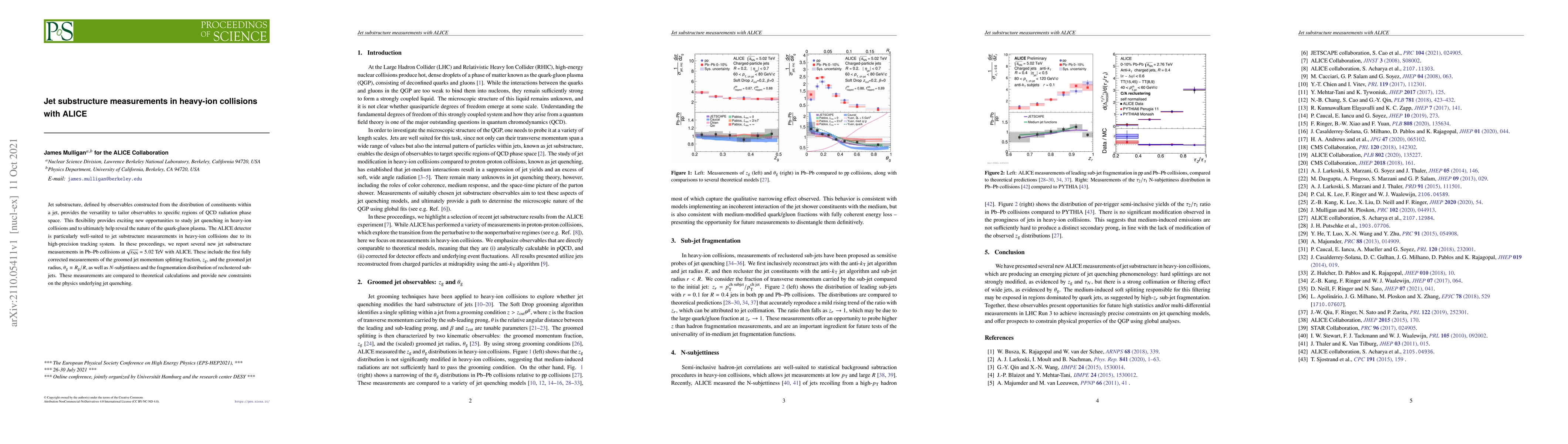 This paper reports new jet substructure measurements using the ALICE detector in heavy-ion collisions, including the first fully corrected data on groomed jet momentum splitting and radius, alongside $N$-subjettiness and fragmentation distributions. These findings provide insights into jet quenching and the quark-gluon plasma.