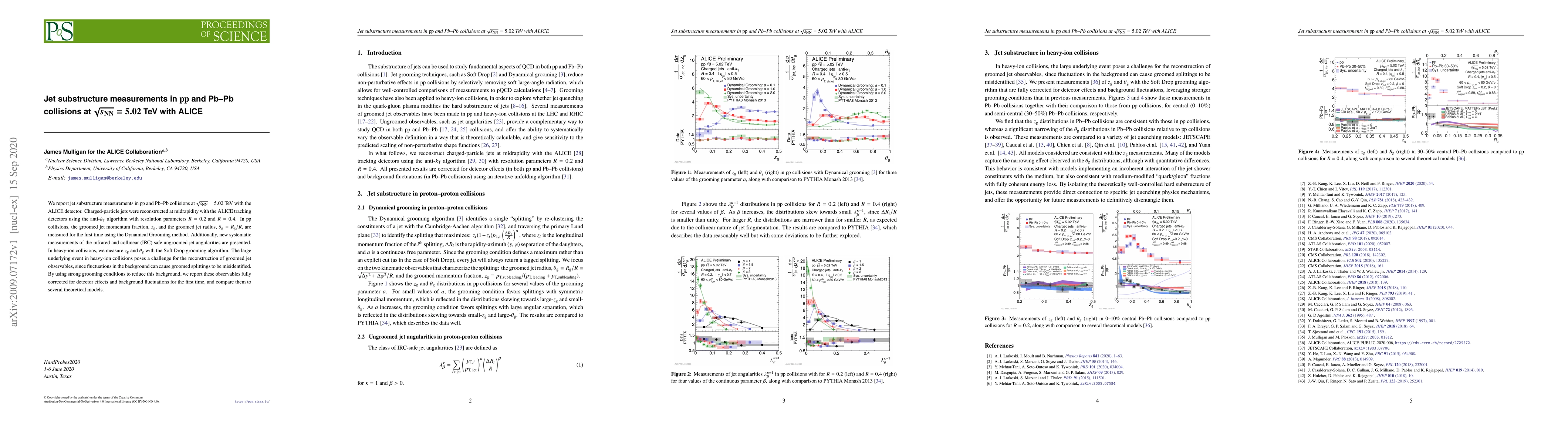 This paper reports on jet substructure measurements in proton-proton and lead-ion collisions at 5.02 TeV using the ALICE detector, focusing on the first measurements of groomed jet momentum fraction and radius in pp collisions with the Dynamical Grooming method. In Pb-Pb collisions, the study measures these observables with the Soft Drop algorithm, correcting for detector effects and background fluctuations, and compares the results to theoretical models.