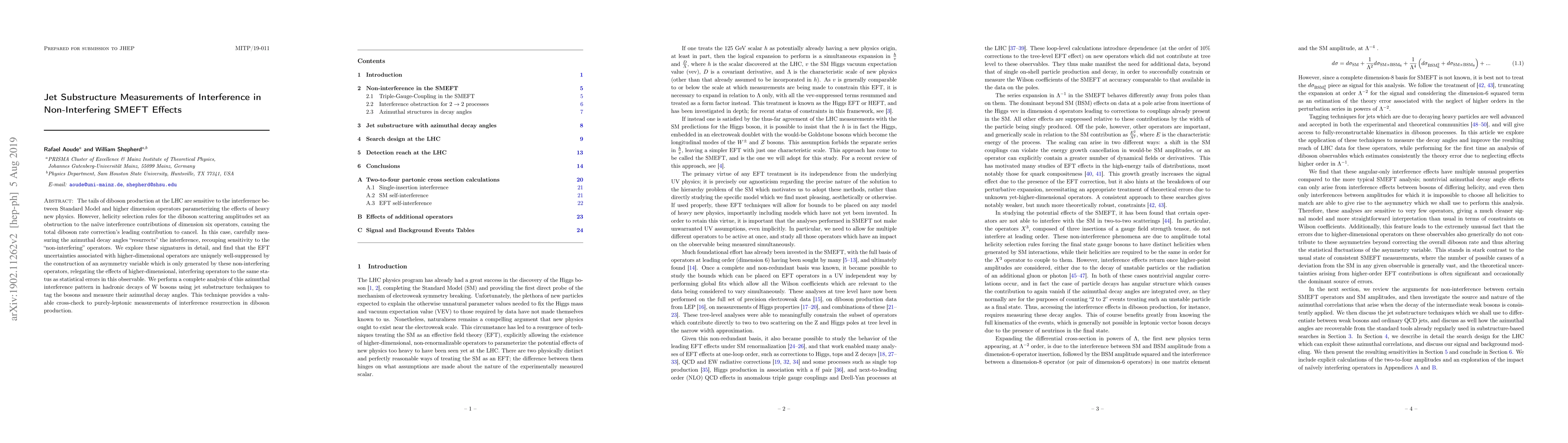 This paper investigates the interference between Standard Model and higher-dimensional operators in diboson production at the LHC, focusing on non-interfering Standard Model Effective Field Theory (SMEFT) effects. By measuring azimuthal decay angles using jet substructure techniques, the study reveals a method to resurrect interference and suppress EFT uncertainties, providing a robust cross-check to leptonic measurements.