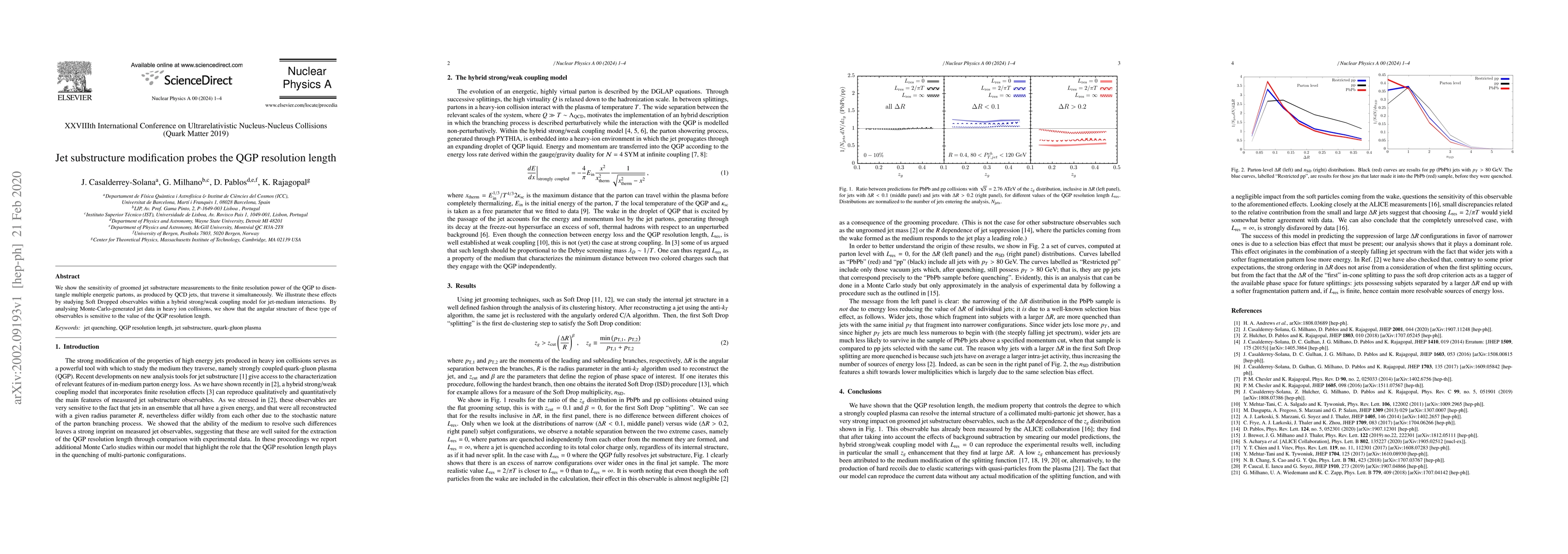We show the sensitivity of groomed jet substructure measurements to the finite resolution power of the QGP to disentangle multiple energetic partons, as produced by QCD jets, that traverse it simultaneously. We illustrate these effects by studying Soft Dropped observables within a hybrid strong/weak coupling model for jet-medium interactions. By analysing Monte-Carlo-generated jet data in heavy ion collisions, we show that the angular structure of these type of observables is sensitive to the value of the QGP resolution length.
