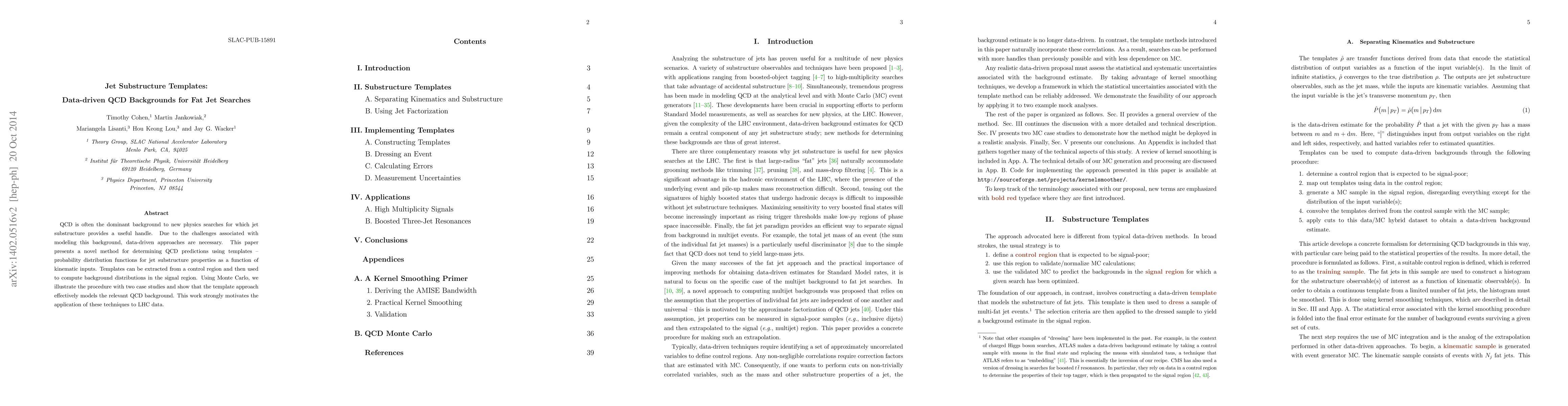 This paper introduces a data-driven method for modeling QCD backgrounds using jet substructure templates, which are probability distributions derived from control regions. The method effectively predicts QCD behavior in signal regions, as demonstrated through Monte Carlo simulations, and is recommended for application to LHC data.