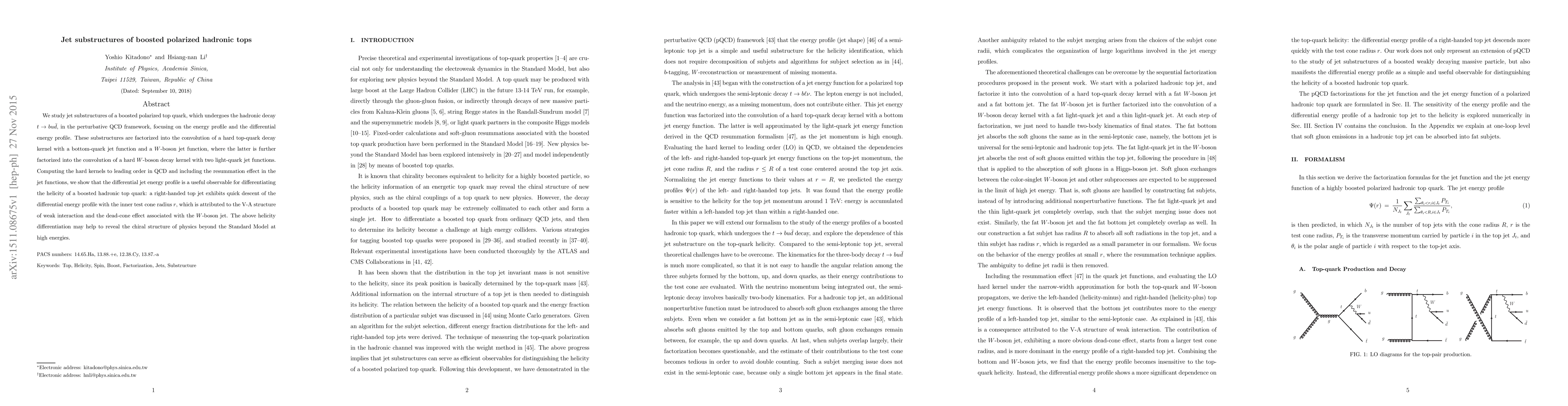 This paper investigates jet substructures from a boosted polarized top quark undergoing hadronic decay, revealing that the differential jet energy profile can distinguish between left- and right-handed top quarks due to the V-A structure of weak interaction and the dead-cone effect, potentially shedding light on physics beyond the Standard Model.