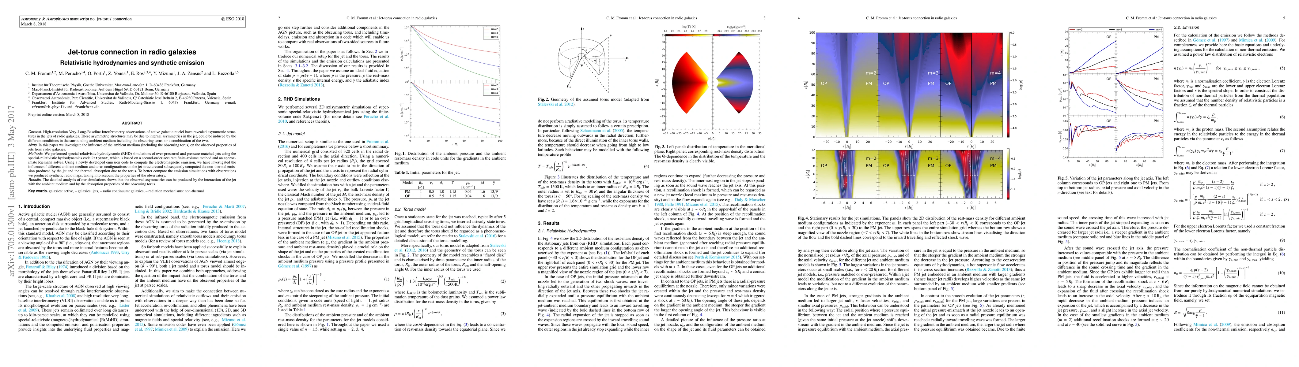 High-resolution Very-Long-Baseline Interferometry observations of active galactic nuclei have revealed asymmetric structures in the jets of radio galaxies. These asymmetric structures may be due to internal asymmetries in the jet, could be induced by the different conditions in the surrounding ambient medium including the obscuring torus, or a combination of the two. In this paper we investigate the influence of the ambient medium (including the obscuring torus) on the observed properties of jets from radio galaxies. We performed special-relativistic hydrodynamic (RHD) simulations of over-pressured and pressure-matched jets using the special-relativistic hydrodynamics code \texttt{Ratpenat}, which is based on a second-order accurate finite-volume method and an approximate Riemann solver. Using a newly developed emission code to compute the electromagnetic emission, we have investigated the influence of different ambient medium and torus configurations on the jet structure and subsequently computed the non-thermal emission produced by the jet and the thermal absorption due to the torus. To better compare the emission simulations with observations we produced synthetic radio maps, taking into account the properties of the observatory. The detailed analysis of our simulations shows that the observed asymmetries can be produced by the interaction of the jet with the ambient medium and by the absorption properties of the obscuring torus.