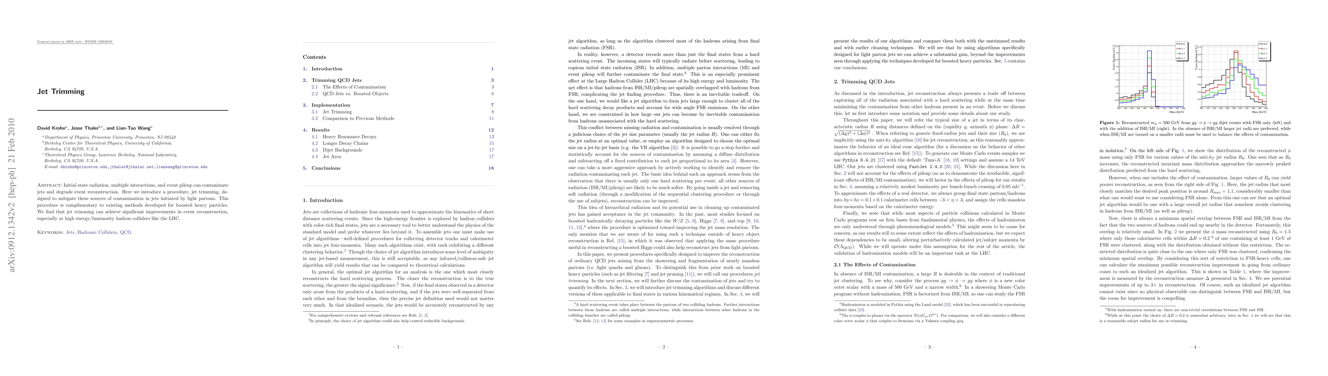 Summary: Jet trimming is a new procedure to mitigate contamination in jets from light partons due to initial state radiation, multiple interactions, and event pileup, significantly enhancing event reconstruction, particularly at high-energy/luminosity colliders like the LHC. This method complements existing techniques for boosted heavy particles.