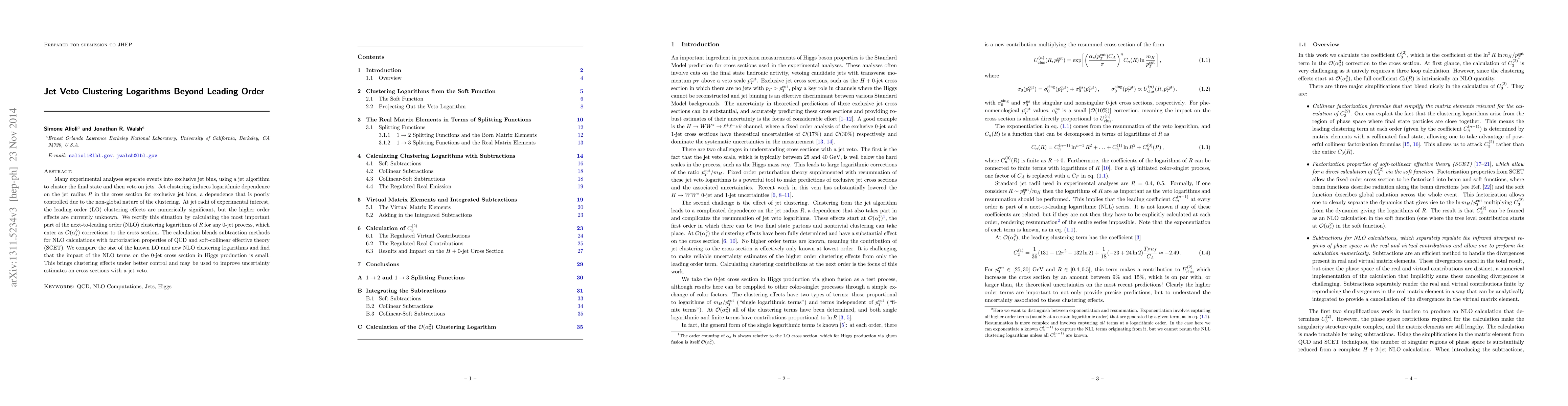 This paper calculates next-to-leading order (NLO) clustering logarithms for jet veto processes, providing corrections to the leading order effects. The results show that while leading order effects are significant, the NLO corrections have a small impact on the 0-jet cross section in Higgs production, improving the control over clustering effects.