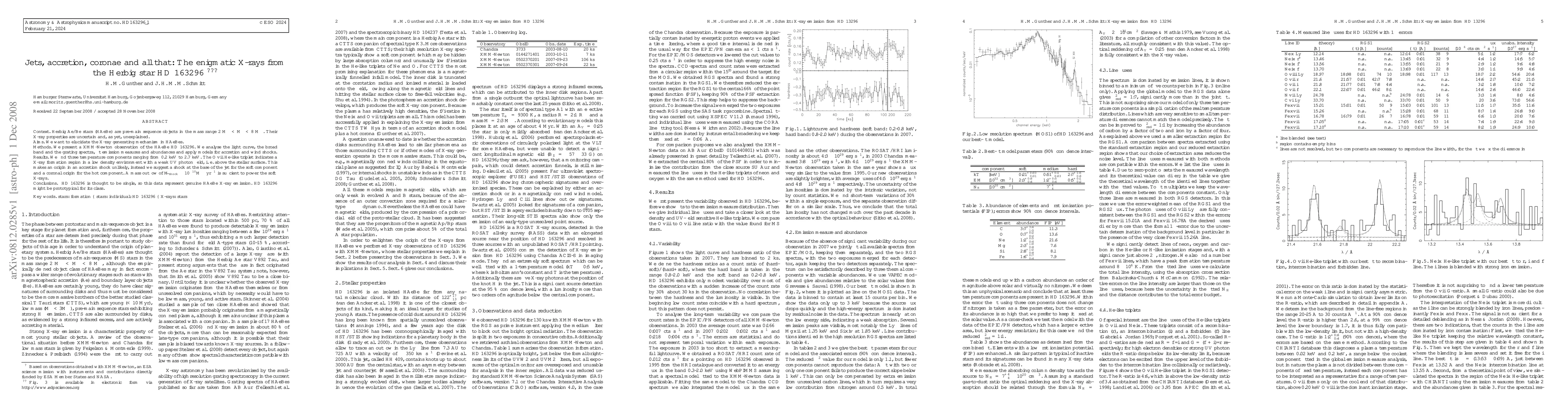 The XMM-Newton observation of HD 163296 reveals three temperature components of X-rays, suggesting a coronal origin for the hot component and an accretion shock at the base of the jet for the soft component.