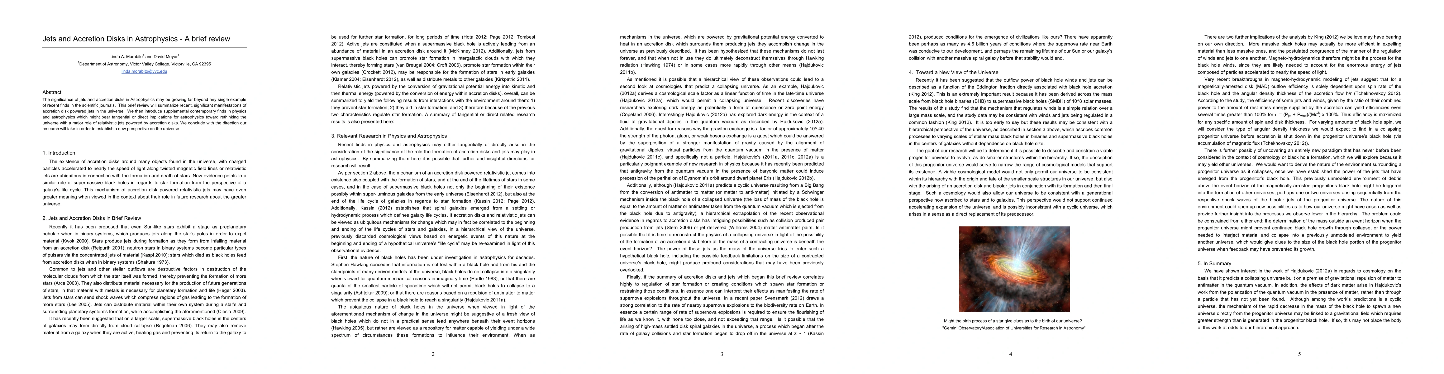 The significance of jets and accretion disks in Astrophysics may be growing far beyond any single example of recent finds in the scientific journals. This brief review will summarize recent, significant manifestations of accretion disk powered jets in the universe. We then introduce supplemental contemporary finds in physics and astrophysics which might bear tangential or direct implications for astrophysics toward rethinking the universe with a major role of relativistic jets powered by accretion disks. We conclude with the direction our research will take in order to establish a new perspective on the universe.
