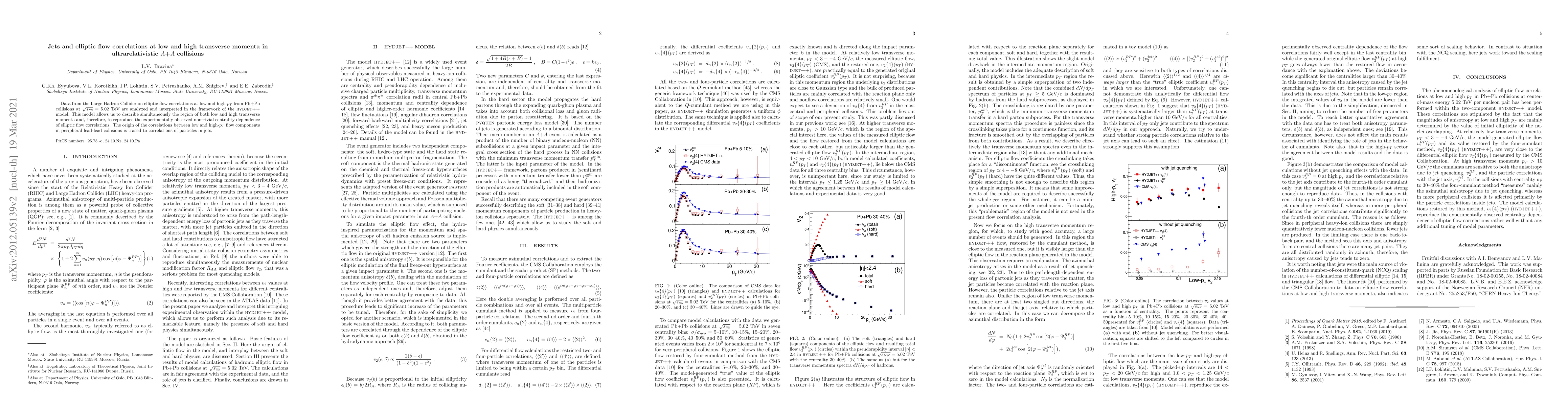 Data from the Large Hadron Collider on elliptic flow correlations at low and high $p_T$ from Pb+Pb collisions at $\sqrt{s_{NN}} = 5.02$~TeV are analyzed and interpreted in the framework of the HYDJET++ model. This model allows us to describe simultaneously the region of both low and high transverse momenta and, therefore, to reproduce the experimentally observed nontrivial centrality dependence of elliptic flow correlations. The origin of the correlations between low and high-$p_T$ flow components in peripheral lead-lead collisions is traced to correlations of particles in jets.