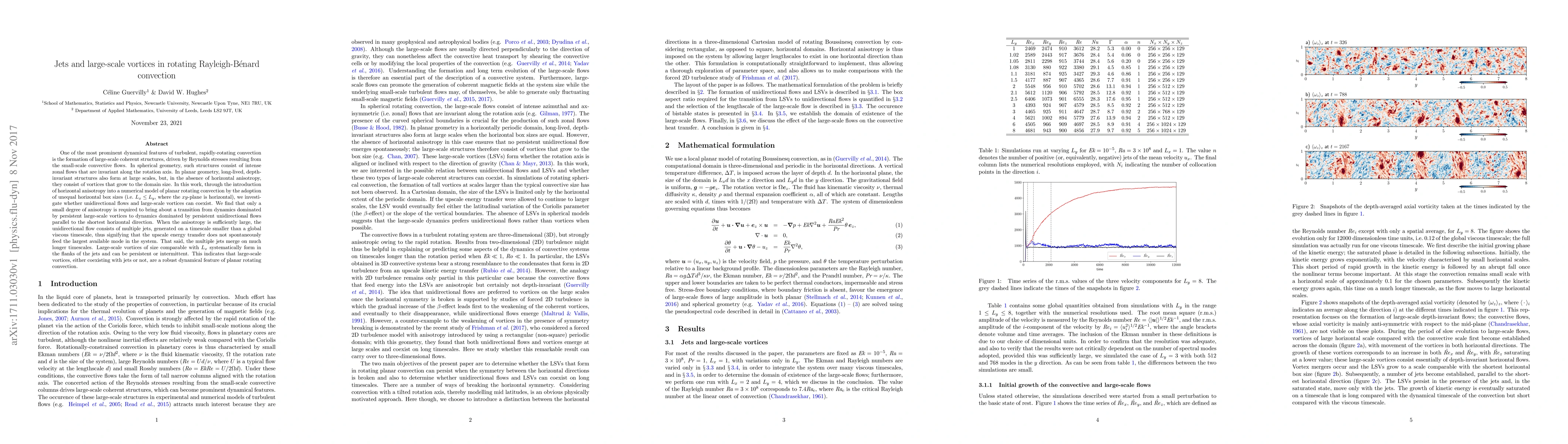 One of the most prominent dynamical features of turbulent, rapidly-rotating convection is the formation of large-scale coherent structures, driven by Reynolds stresses resulting from the small-scale convective flows. In spherical geometry, such structures consist of intense zonal flows that are invariant along the rotation axis. In planar geometry, long-lived, depth-invariant structures also form at large scales, but, in the absence of horizontal anisotropy, they consist of vortices that grow to the domain size. In this work, through the introduction of horizontal anisotropy into a numerical model of planar rotating convection by the adoption of unequal horizontal box sizes (i.e. $L_x \le L_y$, where the $xy$-plane is horizontal), we investigate whether unidirectional flows and large-scale vortices can coexist. We find that only a small degree of anisotropy is required to bring about a transition from dynamics dominated by persistent large-scale vortices to dynamics dominated by persistent unidirectional flows parallel to the shortest horizontal direction. When the anisotropy is sufficiently large, the unidirectional flow consists of multiple jets, generated on a timescale smaller than a global viscous timescale, thus signifying that the upscale energy transfer does not spontaneously feed the largest available mode in the system. That said, the multiple jets merge on much longer timescales. Large-scale vortices of size comparable with $L_x$ systematically form in the flanks of the jets and can be persistent or intermittent. This indicates that large-scale vortices, either coexisting with jets or not, are a robust dynamical feature of planar rotating convection.