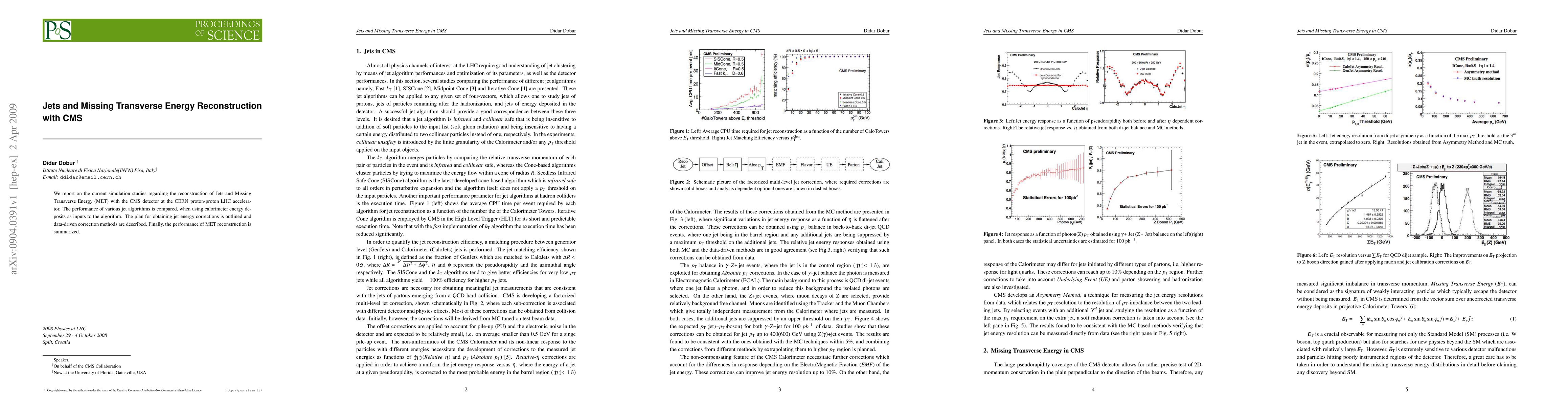 This paper discusses simulation studies on reconstructing jets and missing transverse energy (MET) using the CMS detector at CERN's LHC, comparing various jet algorithms and outlining methods for jet energy corrections, alongside a summary of MET reconstruction performance.