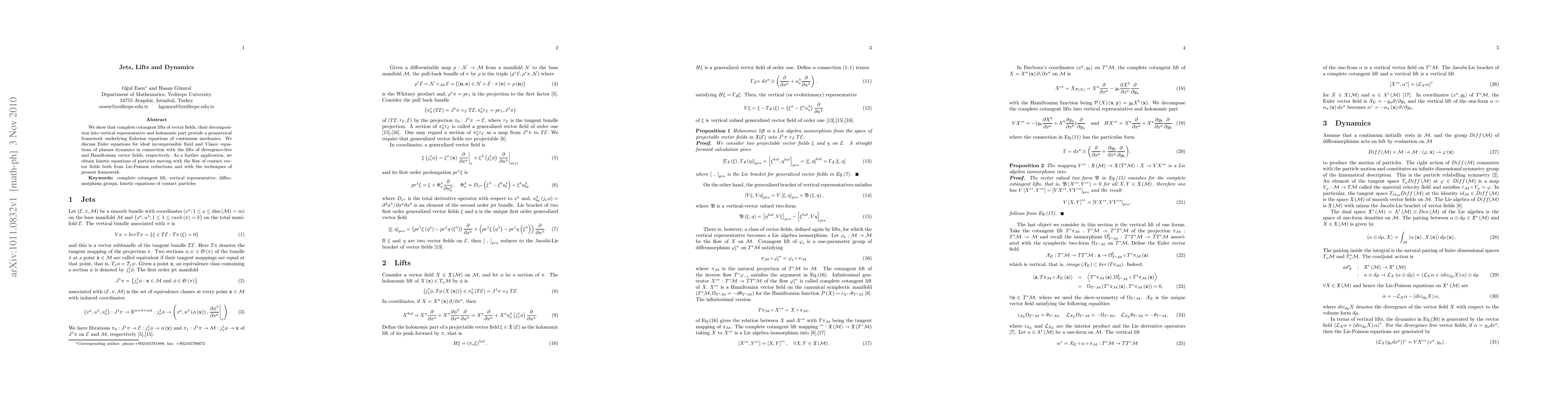 This paper demonstrates how complete cotangent lifts of vector fields decompose into vertical and holonomic parts, providing a geometrical framework for Eulerian equations in continuum mechanics. It applies this framework to derive Euler equations for incompressible fluids and Vlasov equations for plasma dynamics, and also uses it to obtain kinetic equations for particles following contact vector fields.