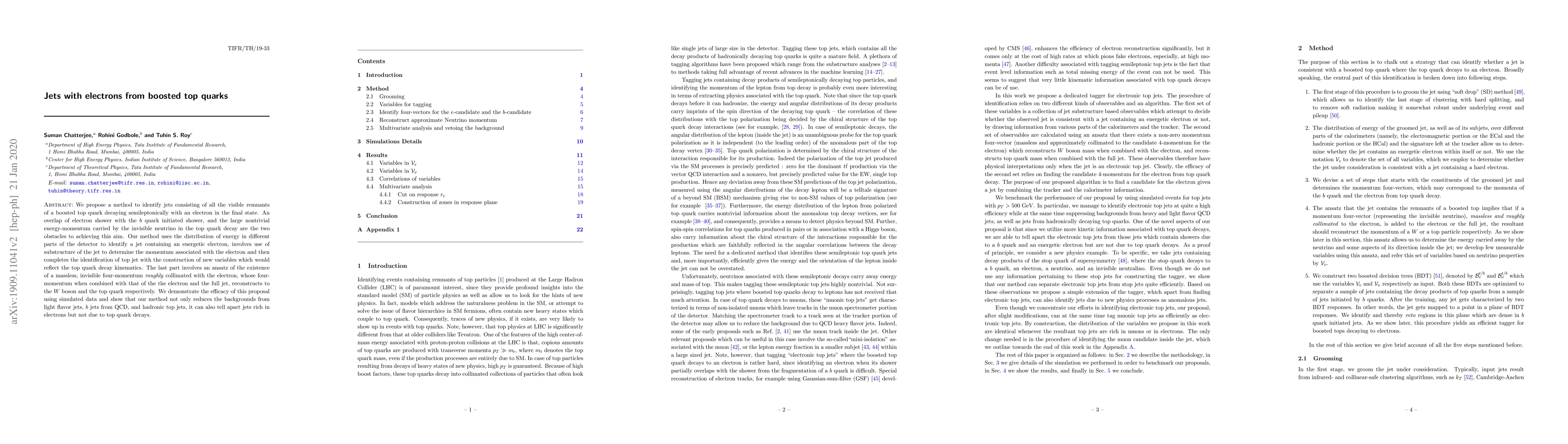 Researchers propose a method to identify jets containing boosted top quark particles that decay into electrons, reducing backgrounds from other particles and providing a new way to distinguish between top quark decays and non-top decays.