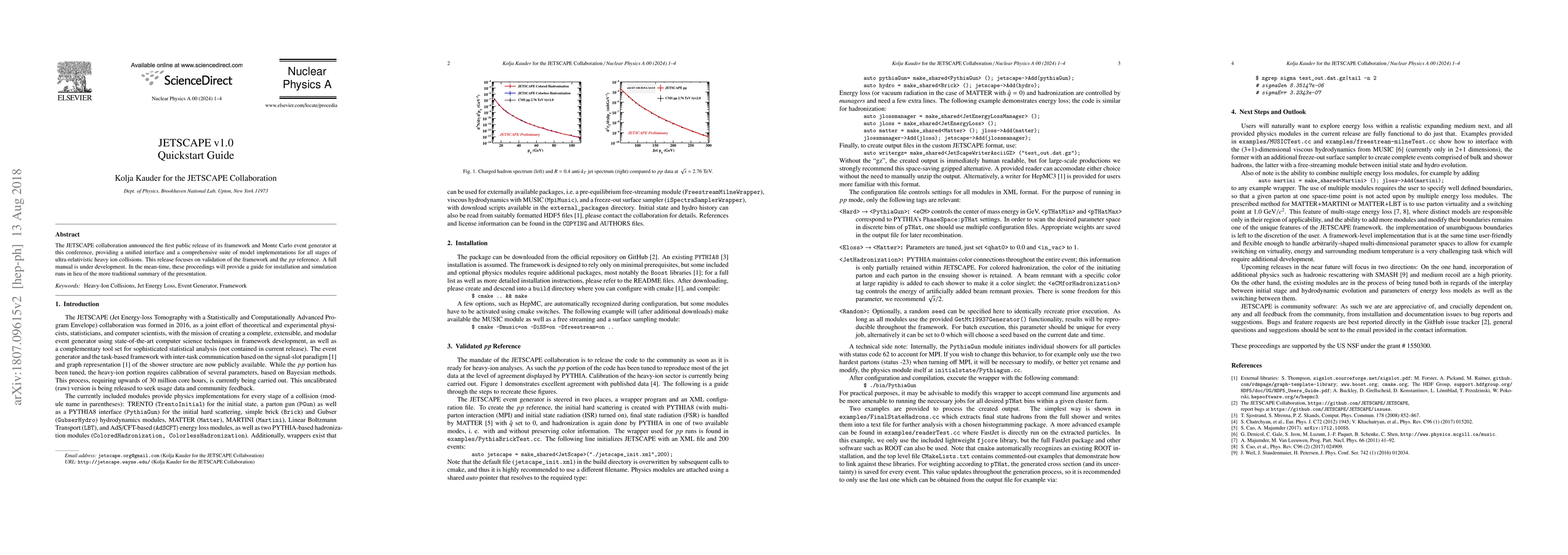 JETSCAPE v1.0, a unified framework for ultra-relativistic heavy ion collisions, was publicly released. The guide focuses on installation and simulation runs, with a comprehensive manual in development.