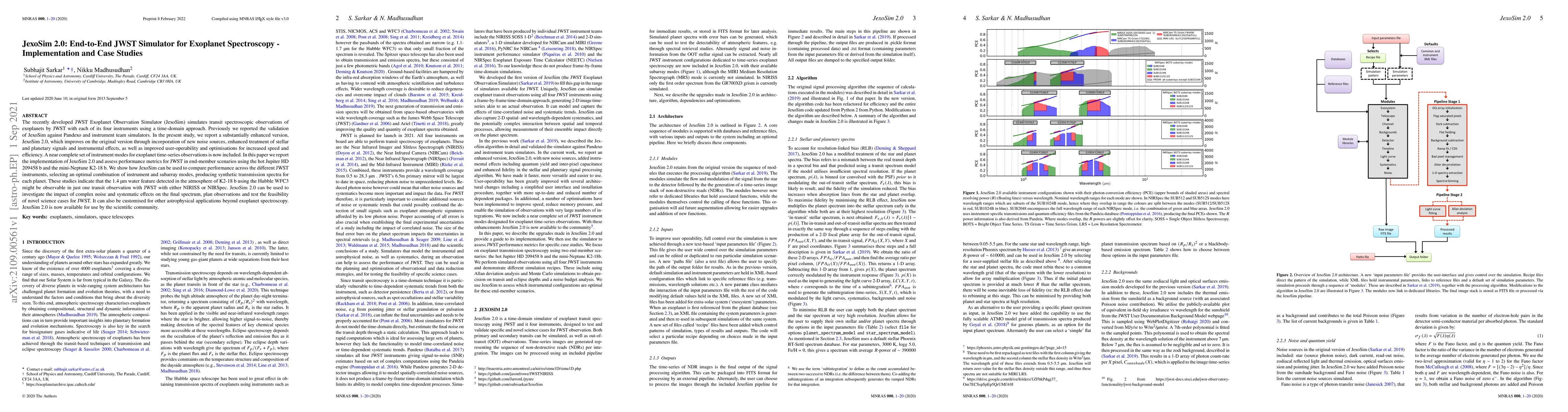 JexoSim 2.0 enhances the simulation of JWST's transit spectroscopic observations, incorporating new noise sources and improved signal treatments. It enables comparison of JWST instruments' performance for exoplanet studies, demonstrating its utility in planning observations and testing science cases for JWST.