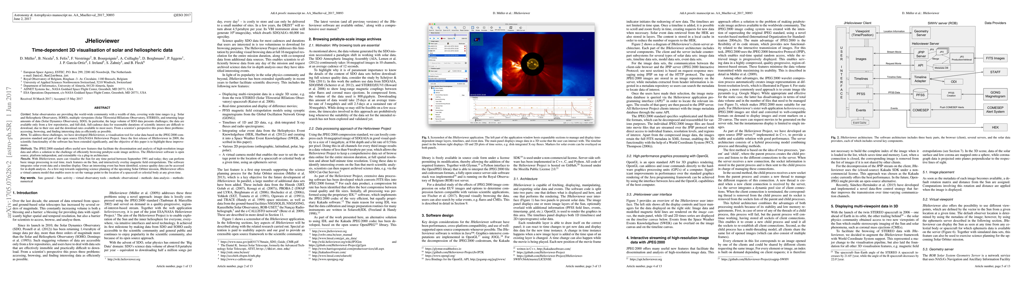 Context. Solar observatories are providing the world-wide community with a wealth of data, covering large time ranges, multiple viewpoints, and returning large amounts of data. In particular, the large volume of SDO data presents challenges: it is available only from a few repositories, and full-disk, full-cadence data for reasonable durations of scientific interest are difficult to download practically due to their size and download data rates available to most users. From a scientist's perspective this poses three problems: accessing, browsing and finding interesting data as efficiently as possible. Aims. To address these challenges, we have developed JHelioviewer, a visualisation tool for solar data based on the JPEG2000 compression standard and part of the open source ESA/NASA Helioviewer Project. Since the first release of JHelioviewer, the scientific functionality of the software has been extended significantly, and the objective of this paper is to highlight these improvements. Methods. The JPEG2000 standard offers useful new features that facilitate the dissemination and analysis of high-resolution image data and offers a solution to the challenge of efficiently browsing petabyte-scale image archives. The JHelioviewer software is open source, platform independent and extendable via a plug-in architecture. Results. With JHelioviewer, users can visualise the Sun for any time period between September 1991 and today. They can perform basic image processing in real time, track features on the Sun and interactively overlay magnetic field extrapolations. The software integrates solar event data and a time line display. As a first step towards supporting science planning of the upcoming Solar Orbiter mission, JHelioviewer offers a virtual camera model that enables users to set the vantage point to the location of a spacecraft or celestial body at any given time.