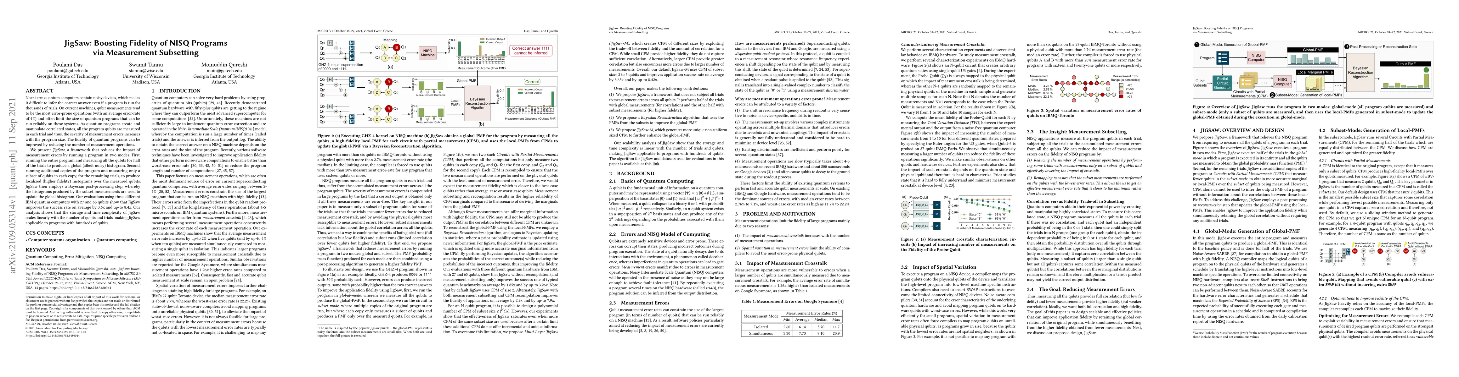A new framework called JigSaw improves the fidelity of quantum programs by reducing measurement errors through partial measurement in trials and a Bayesian post-processing step.