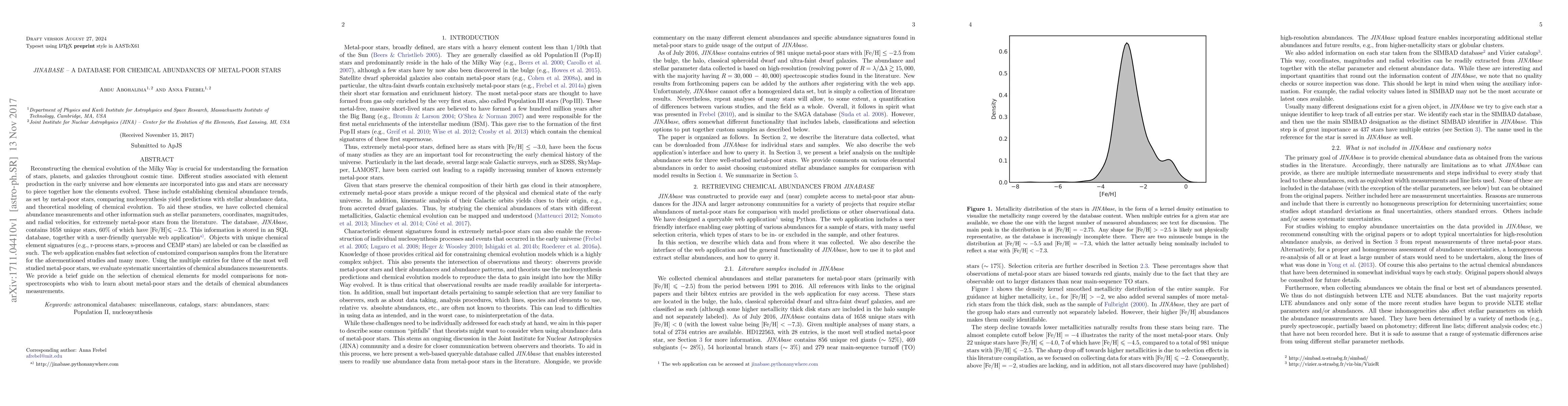 JINAbase is a comprehensive database of chemical abundances for 1658 metal-poor stars, crucial for understanding the Milky Way's chemical evolution. It provides a user-friendly web application for querying data, aiding studies in nucleosynthesis and stellar chemistry.