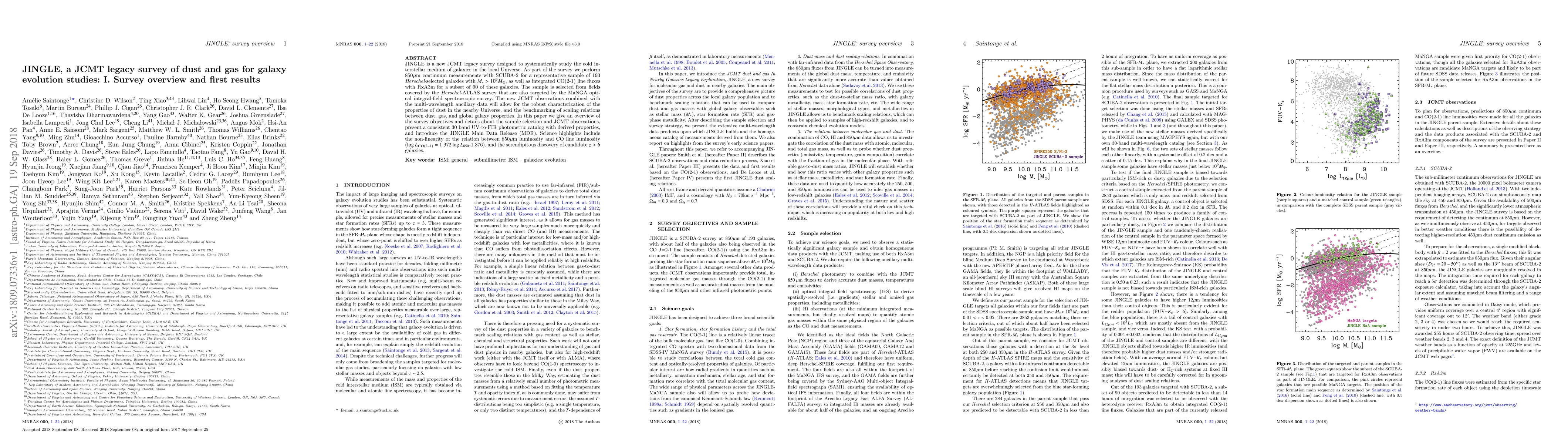 JINGLE is a JCMT survey studying the cold interstellar medium of 193 local galaxies, providing 850um continuum and CO(2-1) line measurements. The survey aims to characterize dust properties and benchmark scaling relations, revealing non-linear relationships between 850um and CO luminosities and discovering candidate z>6 galaxies.