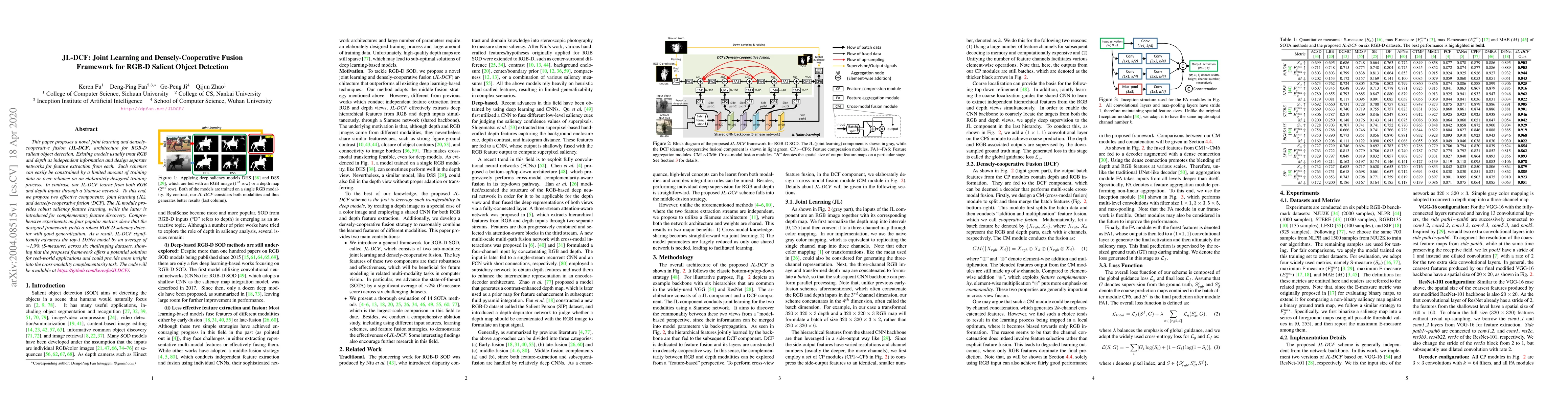 This paper introduces a JL-DCF framework for RGB-D salient object detection, combining joint learning and densely-cooperative fusion to enhance feature extraction from both RGB and depth data. The proposed method outperforms existing models, advancing the top-1 D3Net model by an average of ~1.9% across six datasets.