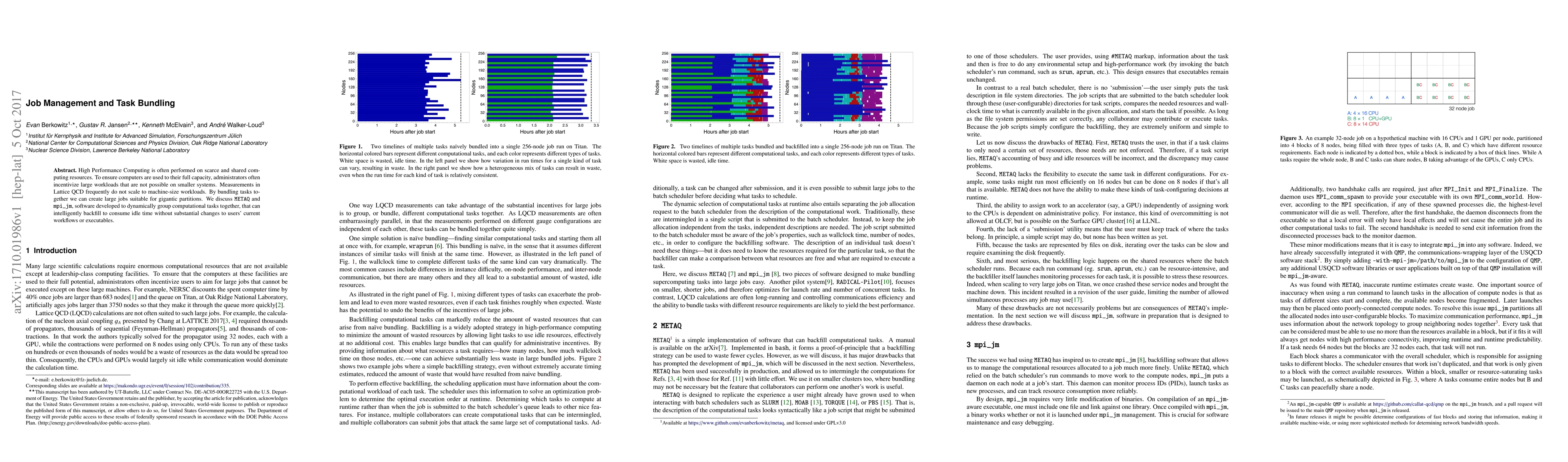 High Performance Computing is often performed on scarce and shared computing resources. To ensure computers are used to their full capacity, administrators often incentivize large workloads that are not possible on smaller systems. Measurements in Lattice QCD frequently do not scale to machine-size workloads. By bundling tasks together we can create large jobs suitable for gigantic partitions. We discuss METAQ and mpi_jm, software developed to dynamically group computational tasks together, that can intelligently backfill to consume idle time without substantial changes to users' current workflows or executables.