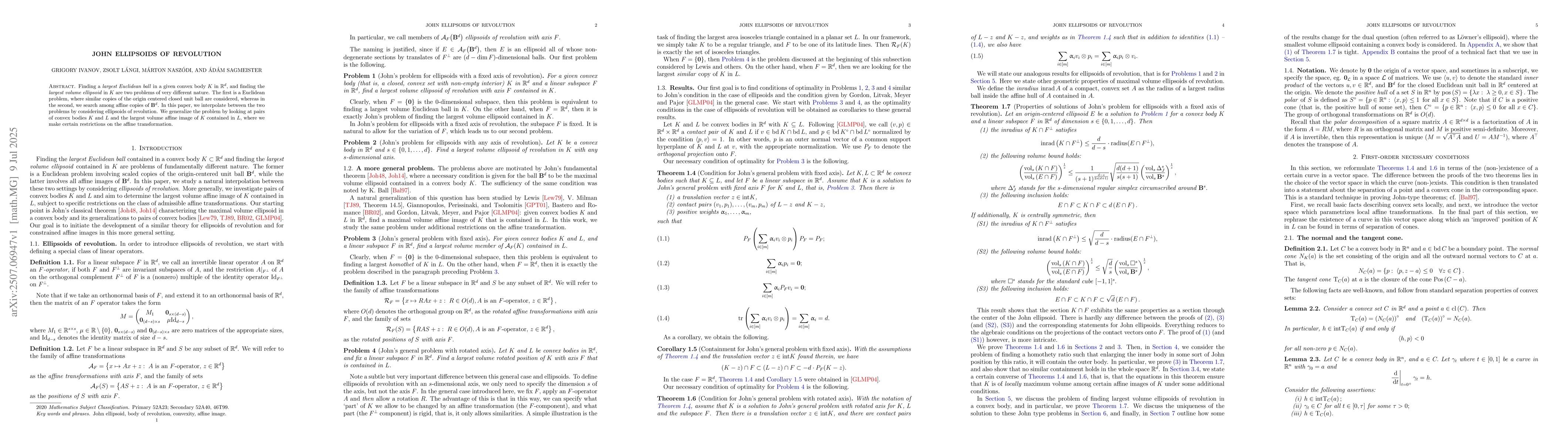 Finding a largest Euclidean ball in a given convex body $K$ in $\mathbb{R}^d$, and finding the largest volume ellipsoid in $K$ are two problems of very different nature. The first is a Euclidean problem, where similar copies of the origin centered closed unit ball are considered, whereas in the second, we search among affine copies of $\mathbf{B}^{d}$. In this paper, we interpolate between the two problems by considering ellipsoids of revolution. We generalize the problem by looking at pairs of convex bodies $K$ and $L$ and the largest volume affine image of $K$ contained in $L$, where we make certain restrictions on the affine transformation.